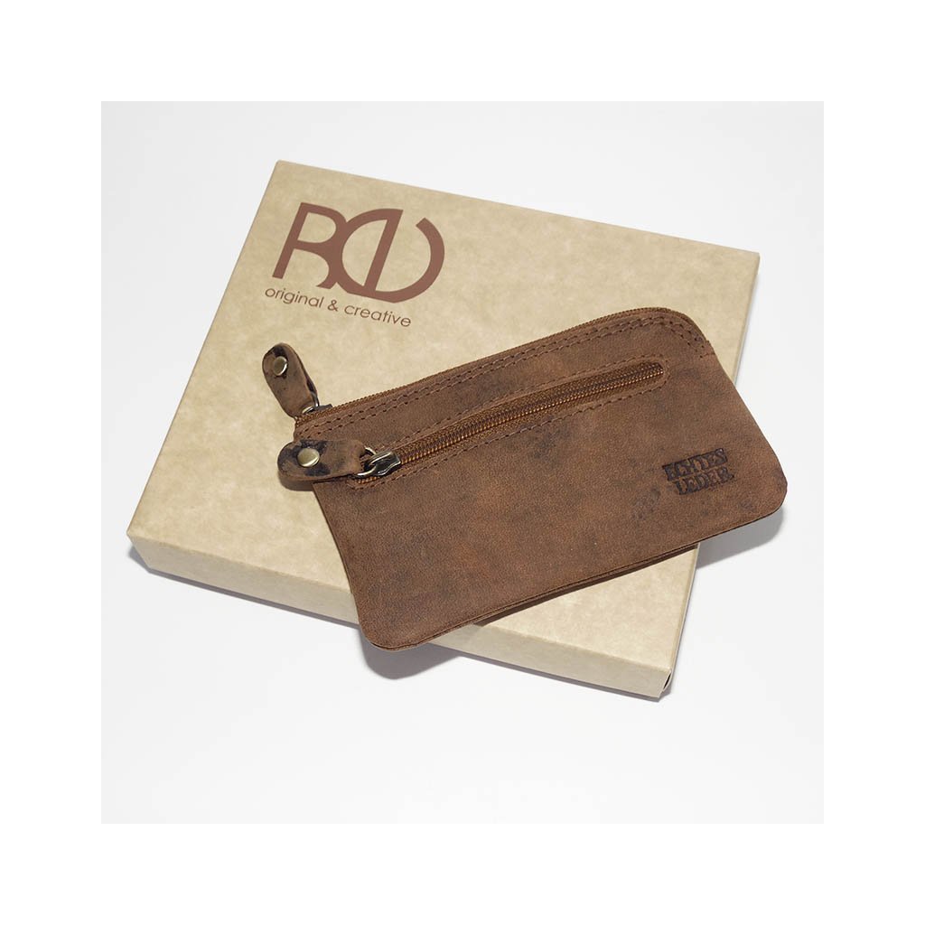 Kombinace klíčenky, pouzdra na mince a kapsy na drobnosti z pravé hovězí kůže v kompaktním designu.