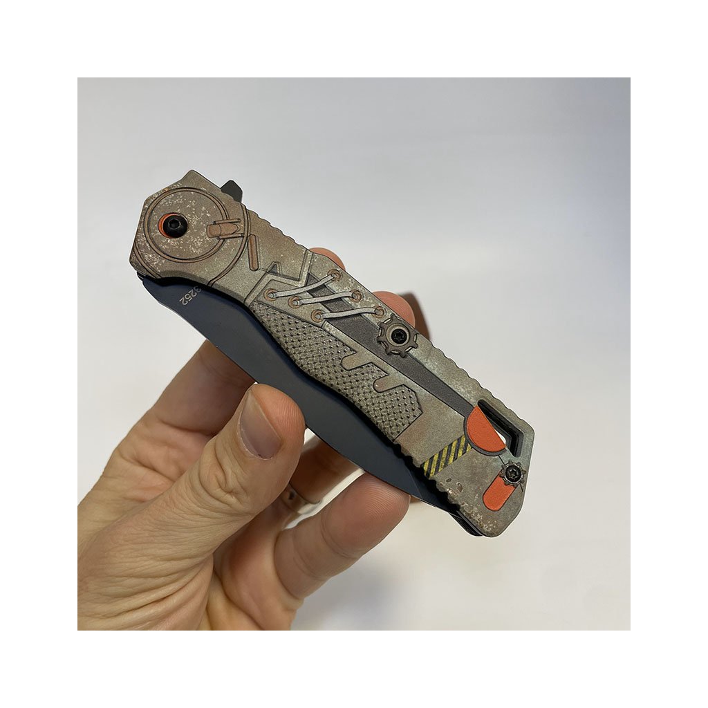 Kvalitní kovový vyklápěcí nůž INDUSTRY včetně koženého pouzdra, navíc monogram, text, motiv