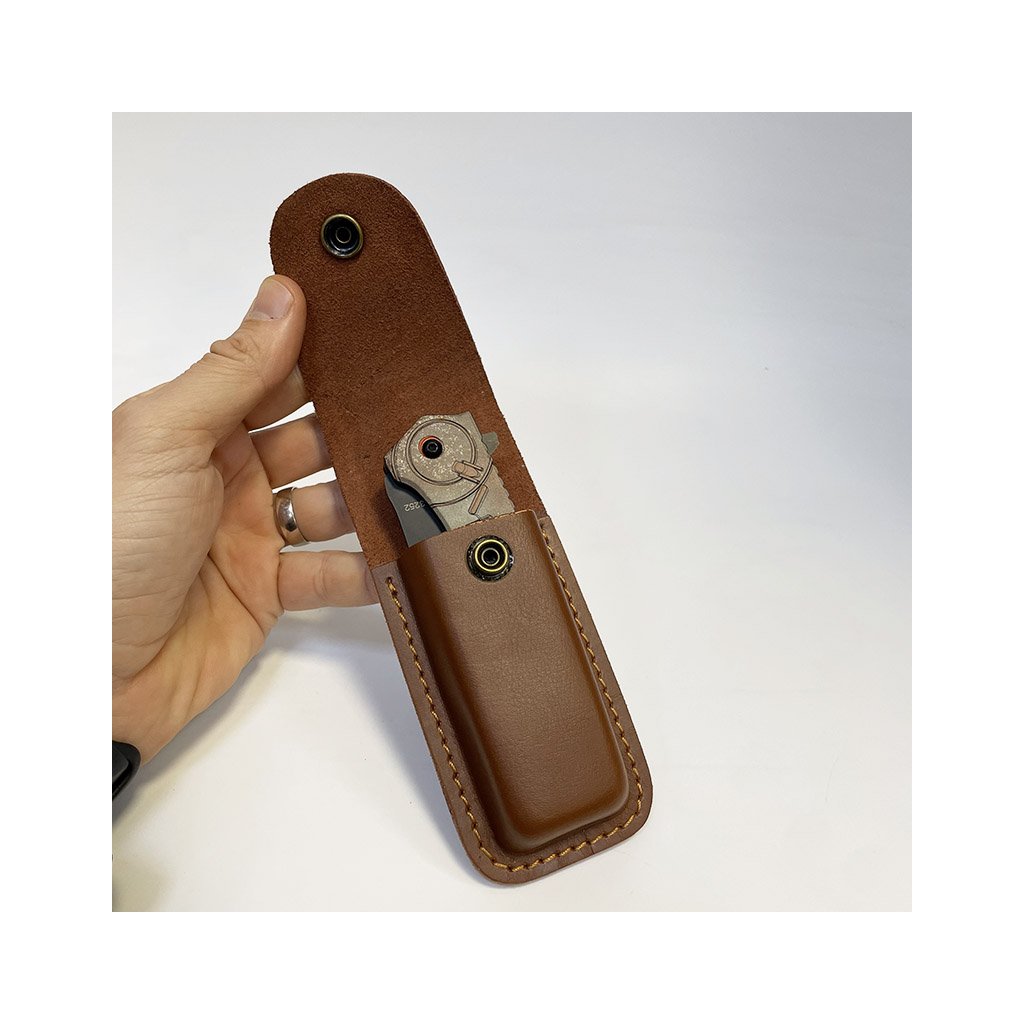 Elegantní kovový nůž s délkou 21 cm (otevřený) a koženým pouzdrem. Možnost gravírování vlastního textu, monogramu či motivu přímo na pouzdro. Stylový a osobitý dárek.