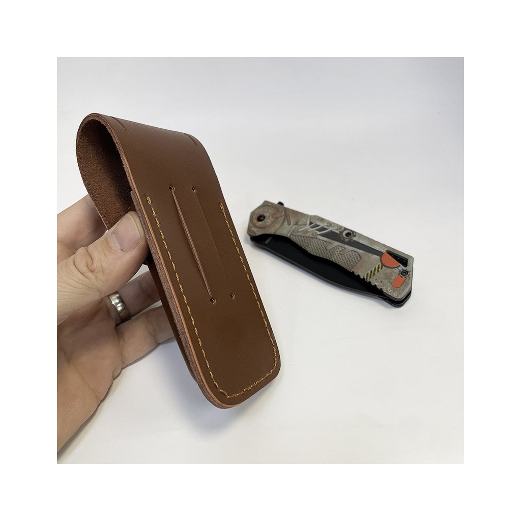 Stylový kovový nůž ve tvaru listu o délce 19 cm (otevřený), včetně koženého pouzdra s možností vlastního gravírování. Unikátní design a praktický doplněk v jednom.
