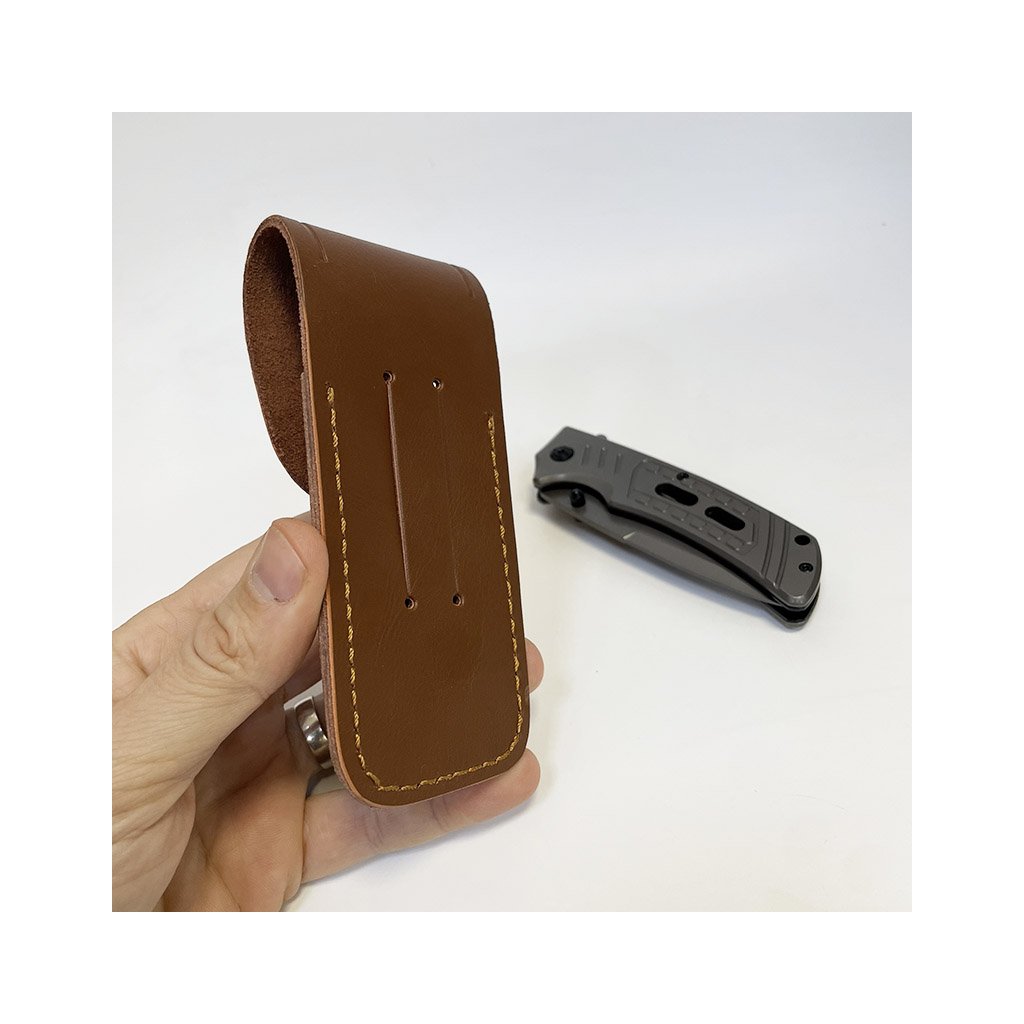 Stylový kovový nůž ve tvaru listu o délce 19 cm (otevřený), včetně koženého pouzdra s možností vlastního gravírování. Unikátní design a praktický doplněk v jednom.