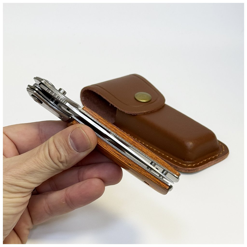 Stylový vyklápěcí nůž s dřevěnou rukojetí a možností vlastního textu. Včetně pouzdra a dárkového balení. Klasika, která potěší i překvapí.