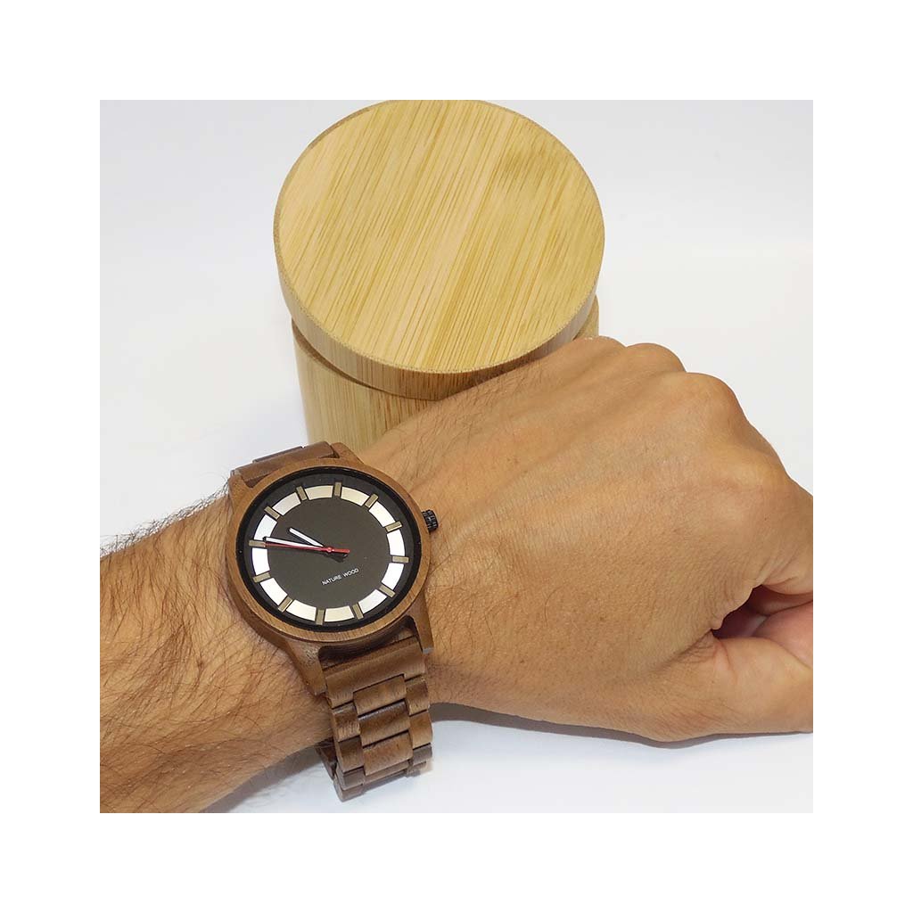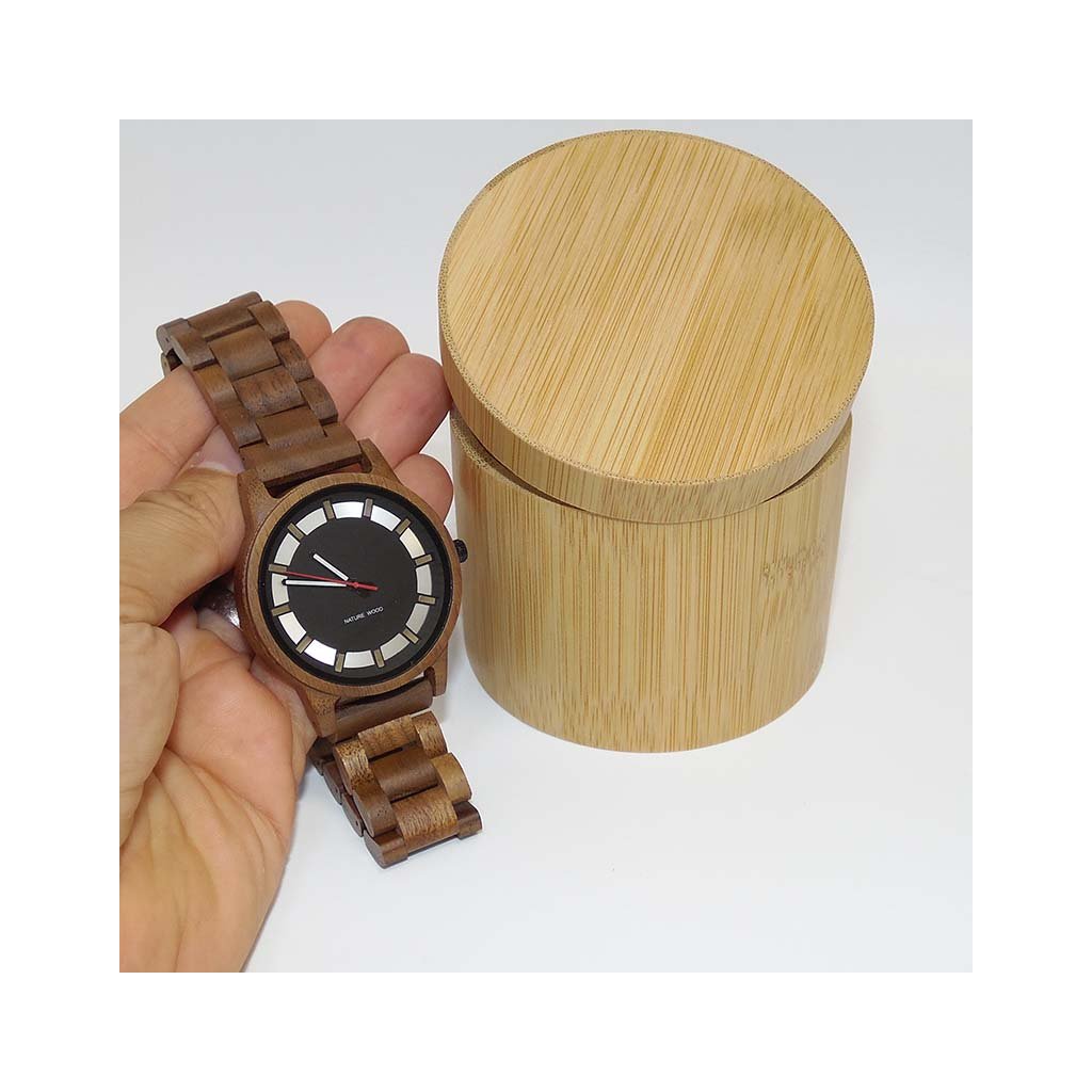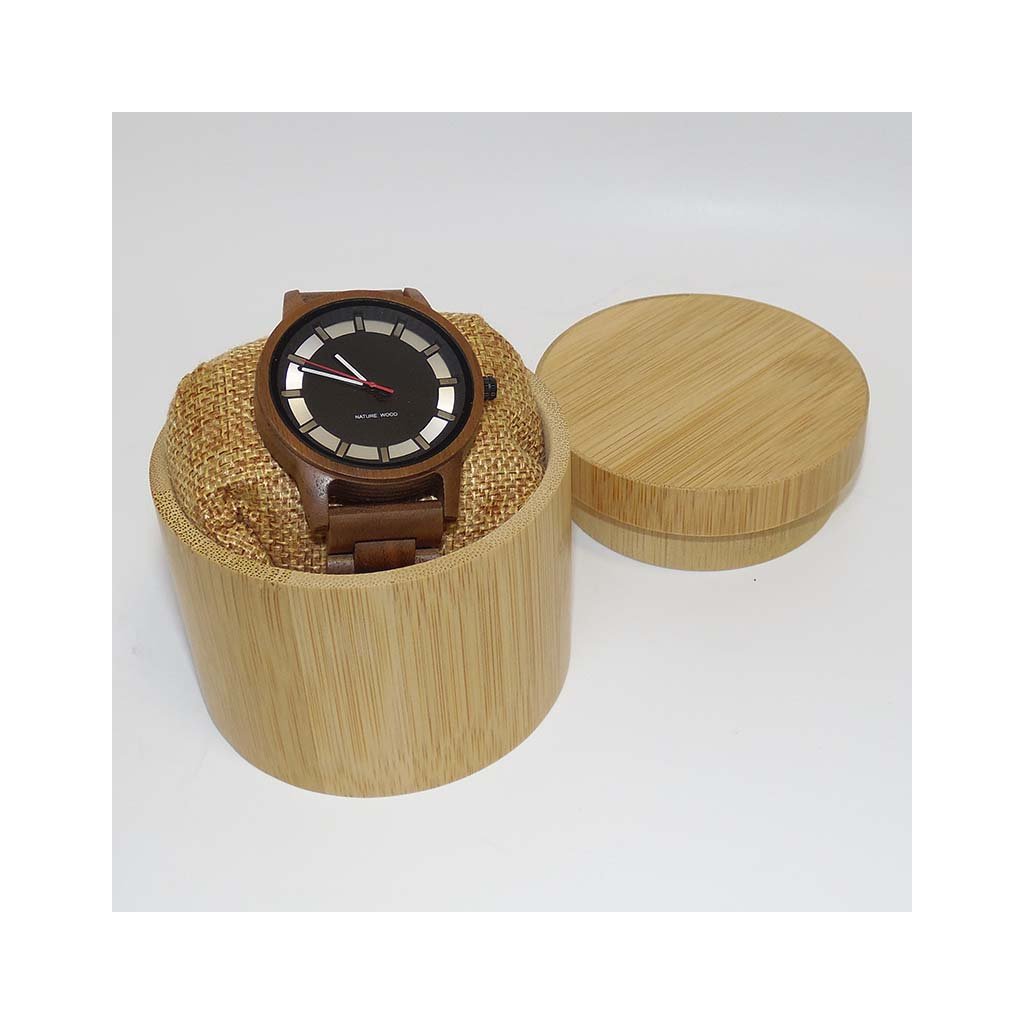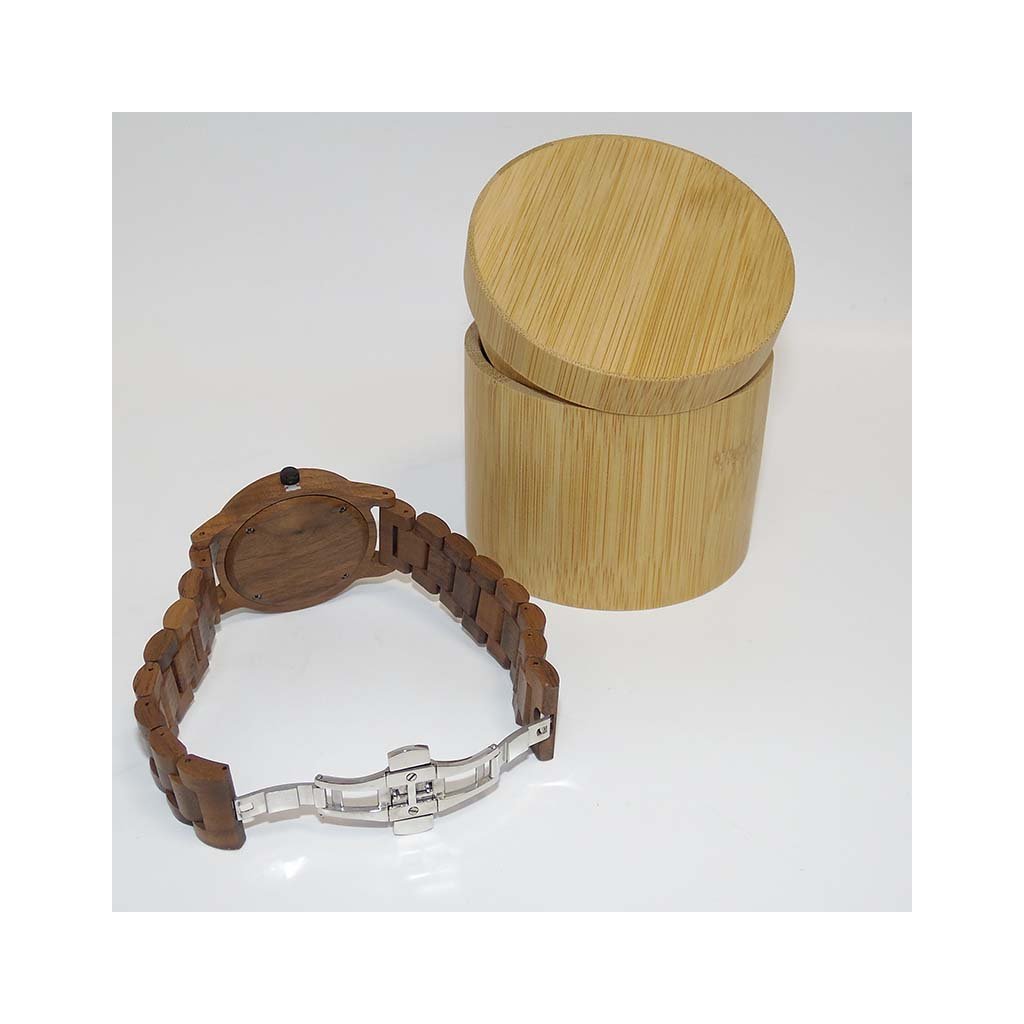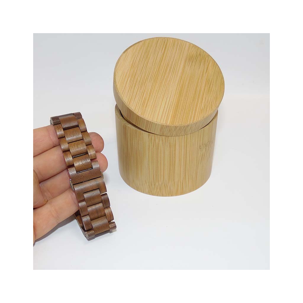 Dárkové balení s vlastním textemSoučástí je elegantní bambusová krabička, která ladí s přírodním charakterem hodinek. |