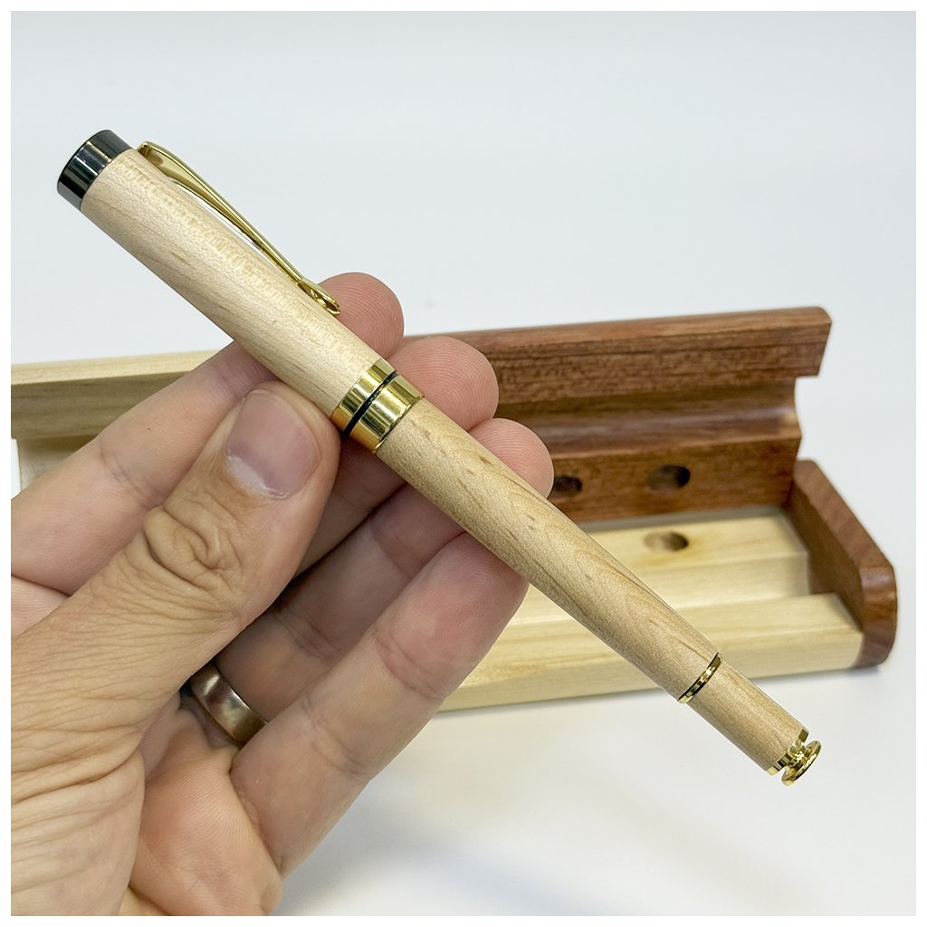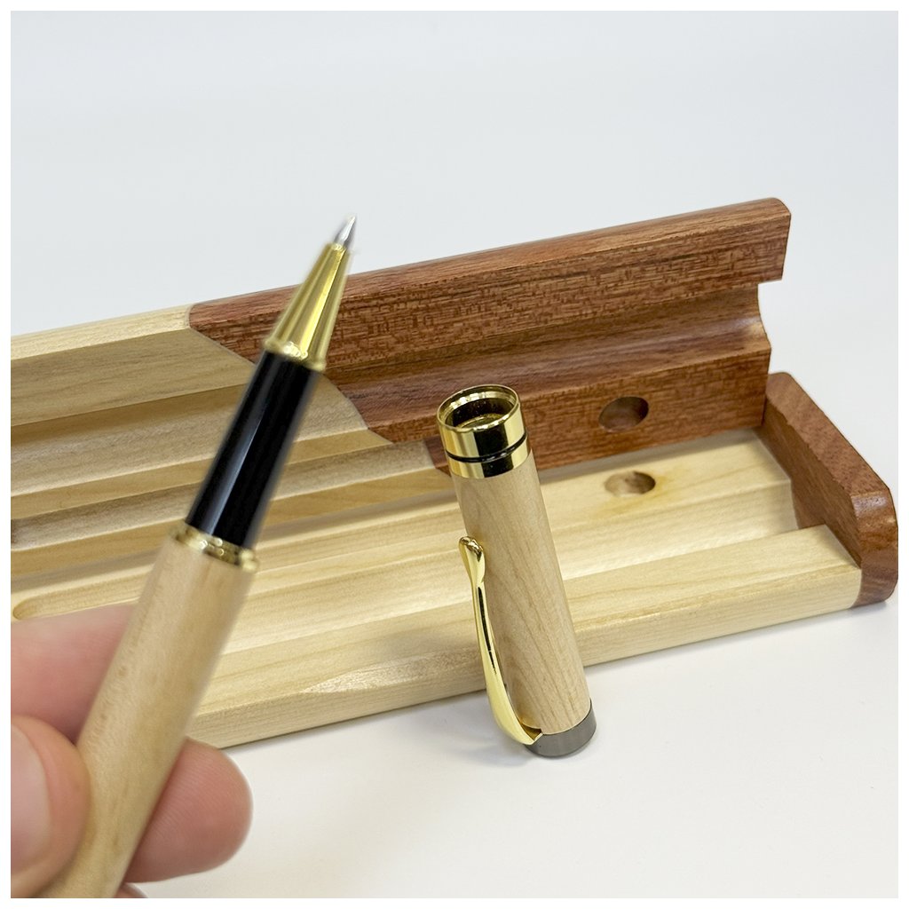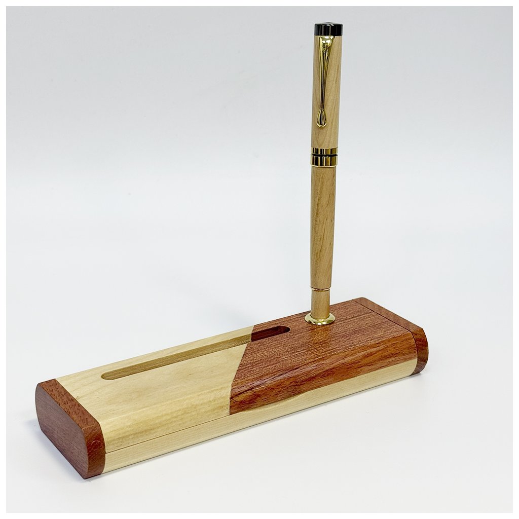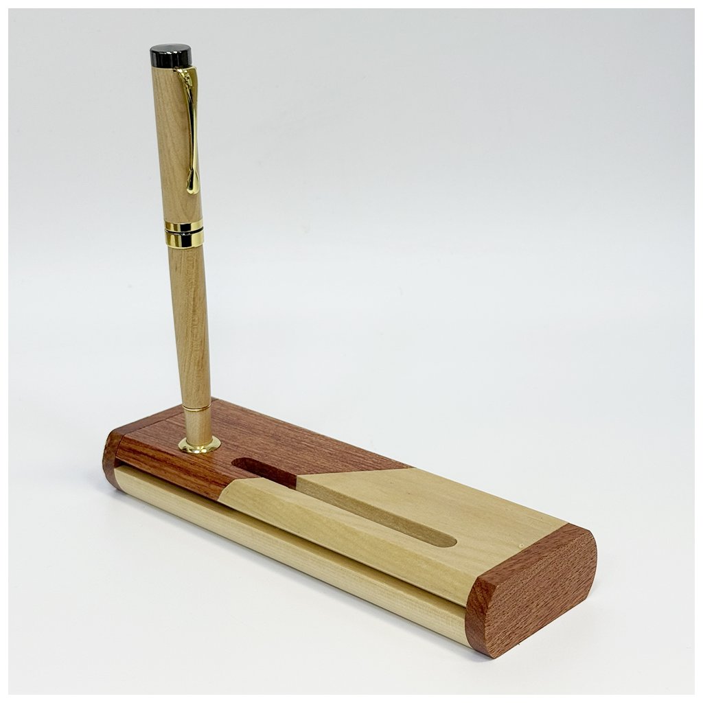 Elegantní spojení kouzla dřeva, tradičního psaní a výjimečného designu – toto pero se stojánkem je víc než psací pomůcka. Stojánek je zabudován v dárkové krabičce, kterou zavřete a díky elegantní dírce se pero postaví – stal se tím pádem poutavou dekorací i praktickým doplňkem vašeho psacího stolu či pracovny.