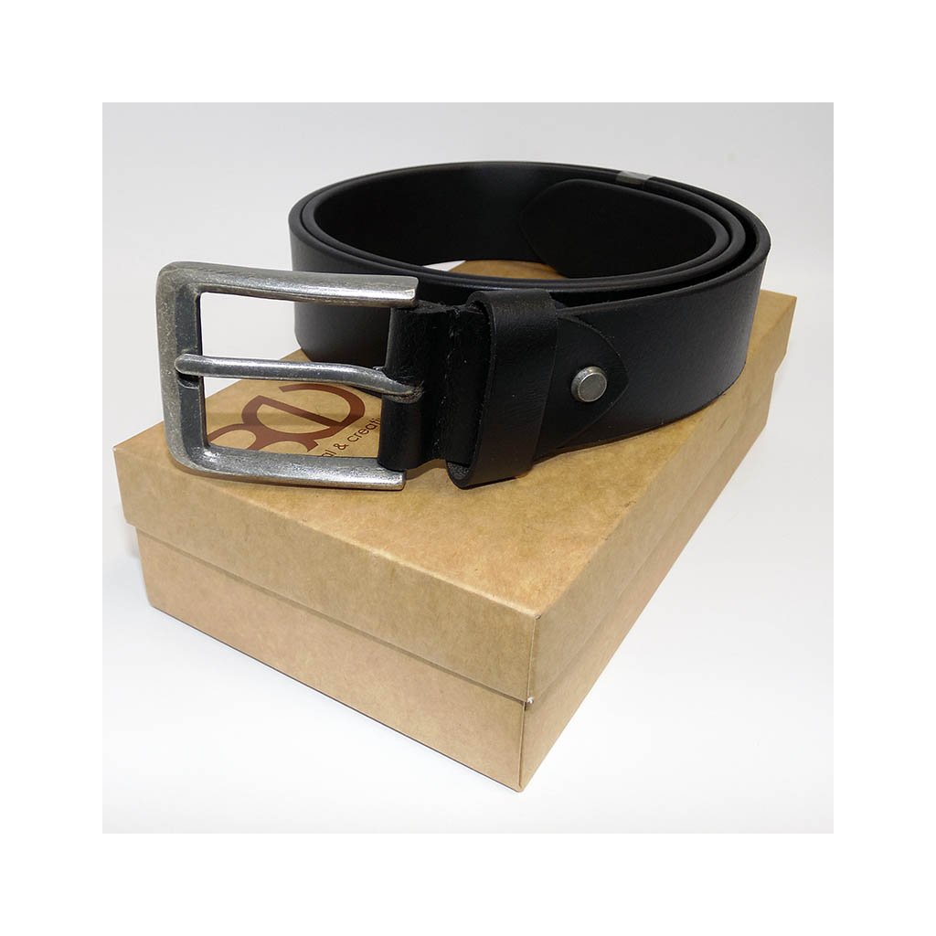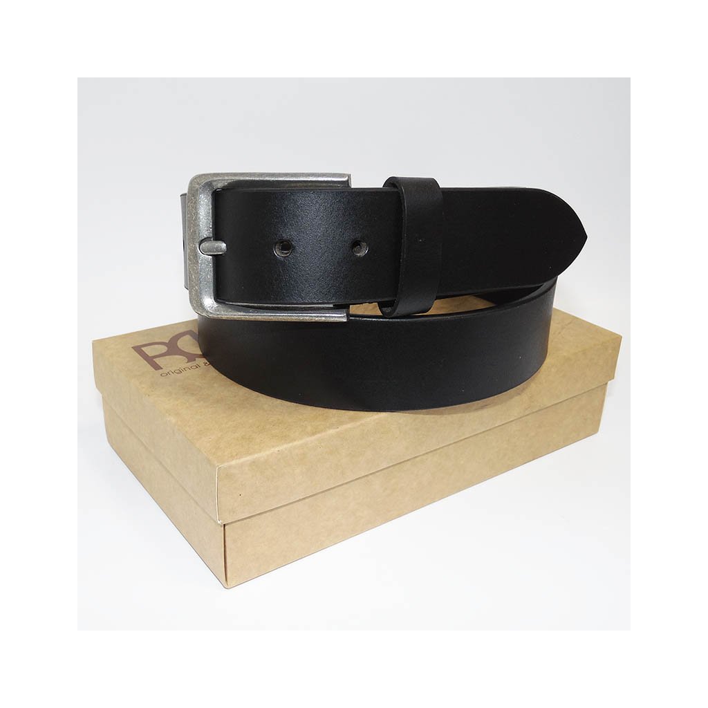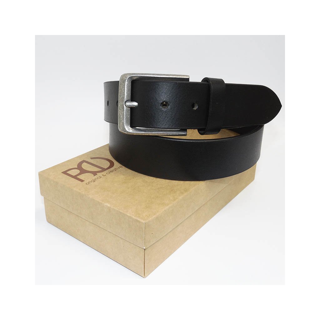 Elegantní pánský černý kožený pásek s dvojitým prošitím, moderní sponou a možností ražby nebo gravírování monogramu. Včetně luxusního dárkového balení.