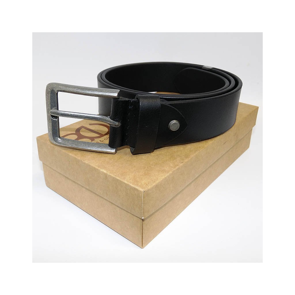 Kvalitní pánský kožený pásek DEUTSCHLAND Leather v černé barvě s prošitím, ražbou vlastního monogramu a možností zkrácení. Elegantní doplněk v dárkovém balení.