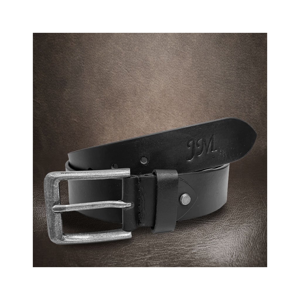 Černý pánský pásek z pravé kůže s monogramem – klasika v osobním provedení, kterou unosíte každý den.