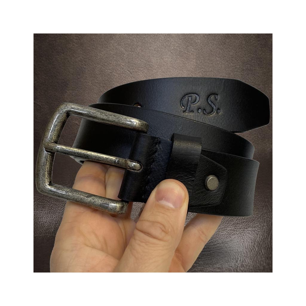Pánský černý kožený pásek s monogramem – Klasika s osobním detailem