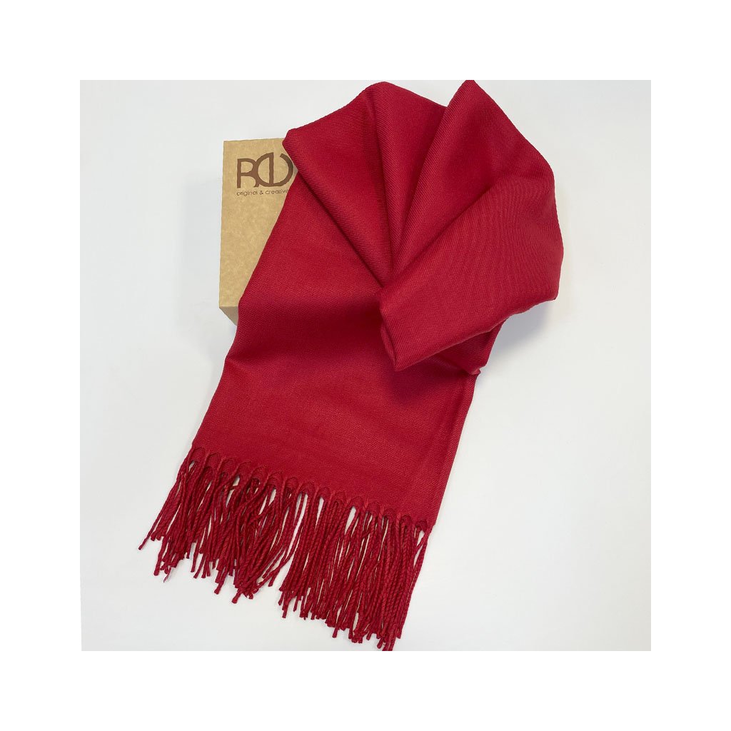 Představujeme vám luxusní pašmínovou šálu v sytě červené barvě, která v sobě spojuje vášeň, energii a eleganci. Díky jemně tkané látce se šála příjemně nosí, je mimořádně hebká a hřejivá. Elegantní třásně na koncích dodávají dokonalý detail, který zvýrazní její exkluzivní vzhled.