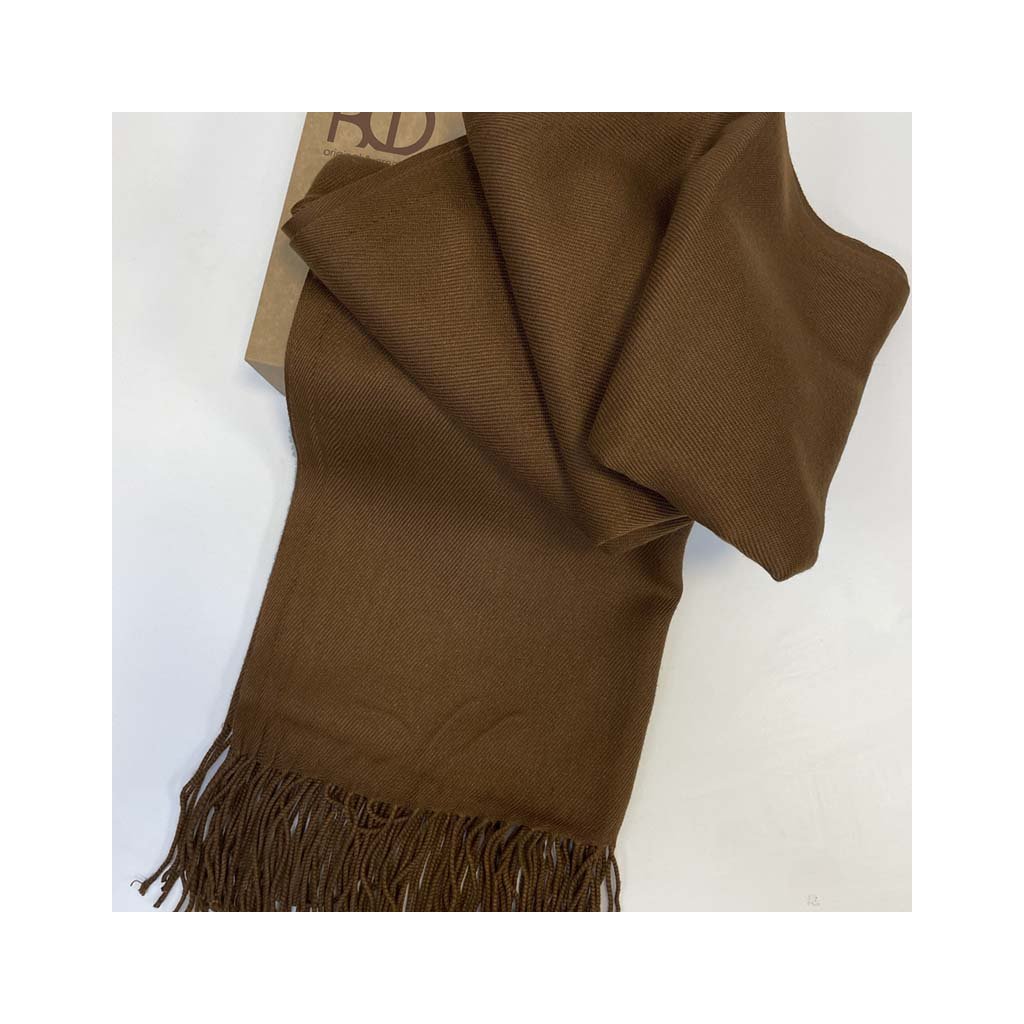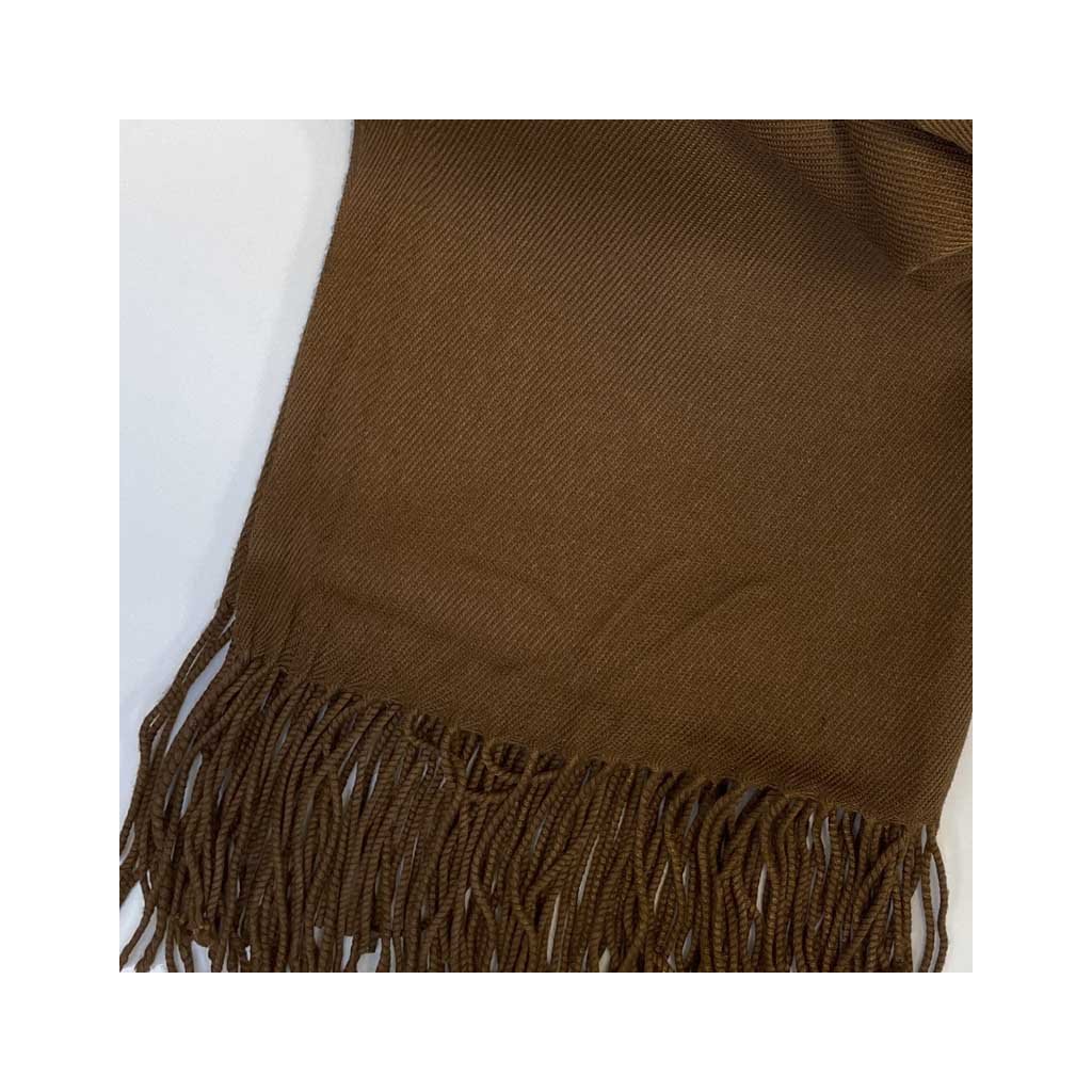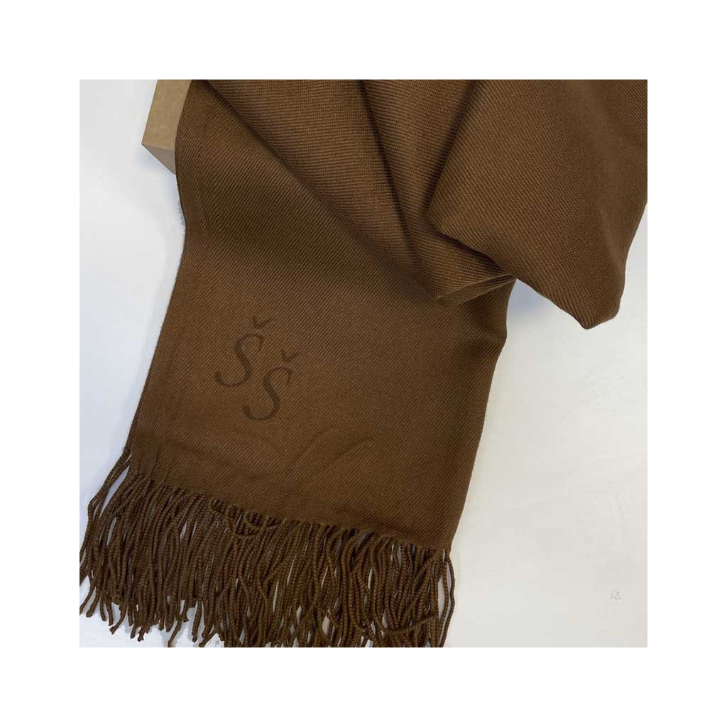 Hnědá dámská luxusní šála typu pašmína s elegantními třásněmi a možností vlastního monogramu. Stylový, hebký doplněk pro každé roční období.