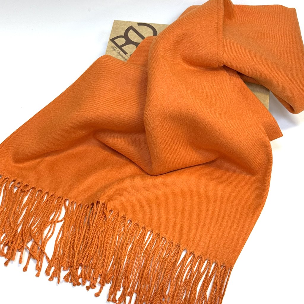 Oranžová pašmína oživí jednoduchý kabát i ležérní outfit a stane se vaším oblíbeným doplňkem pro každé roční období – zahřeje v zimě, rozjasní jaro i podzim.