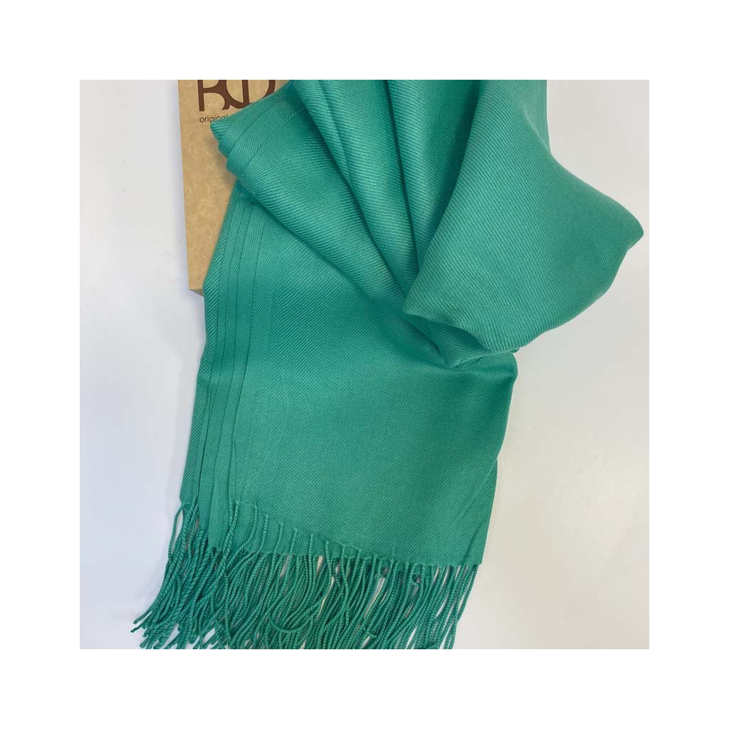 Luxusní dámská pašmínová šála v decentní zelené barvě spojuje sofistikovanost s pohodlím a stylem. Díky jemnému, hustě tkanému materiálu je příjemně hebká na dotek, nekrčí se a zachovává si svou sytou barvu i po mnoha nošeních.