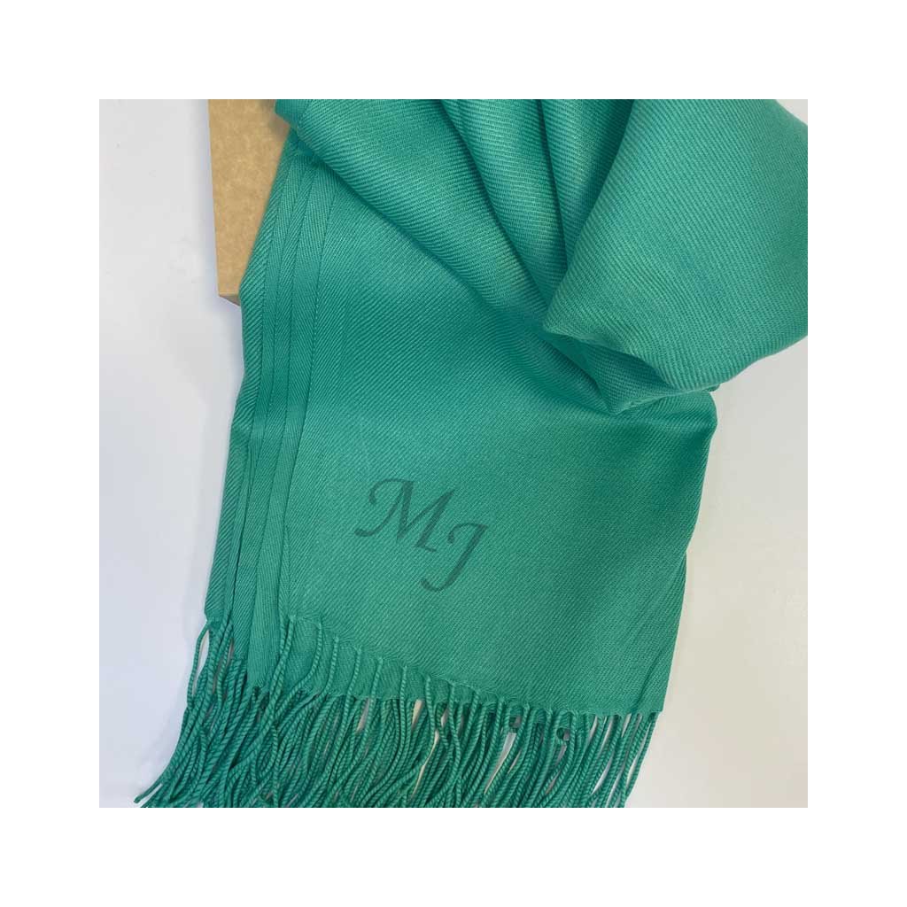 Luxusní pašmínová šála zelená s vlastním monogramem + prémiové dárkové balení BE Original