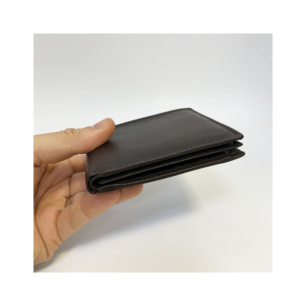 Tato malá, akorát do ruky padnoucí kožená peněženka kombinuje praktičnost s prvotřídní kvalitou. Vyrobena z pravé tmavě hnědé kůže s důrazem na každý detail díky ručnímu šití, nabízí nadčasový design a dlouhou životnost.