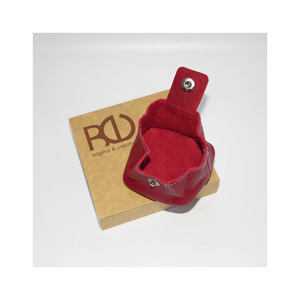 Malé červené kožené pouzdro na drobné BEORIGINAL LEATHER s tvým vlastním monogramem + vlastní monogram