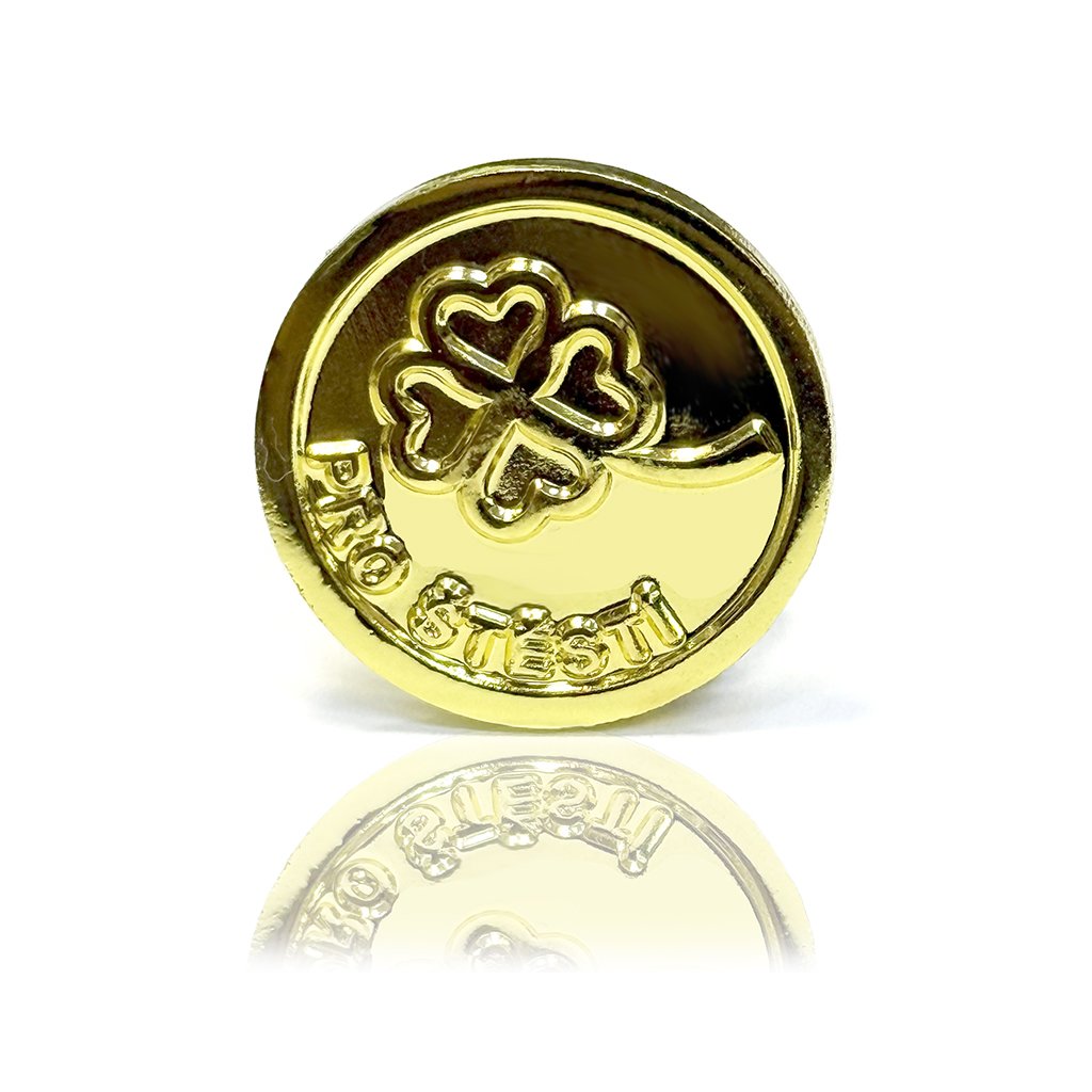 Tato elegantní zlatá mince se čtyřlístkem symbolizuje štěstí, bohatství a dobrou energii – krásný detail, který potěší a dodá vašemu dárku osobitý význam.