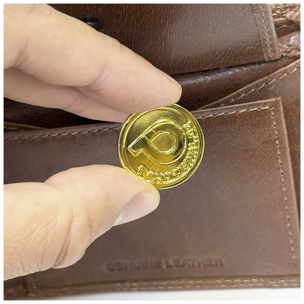 Proto ke každé peněžence zakoupené u nás přikládáme ZLATOU MINCI PRO ŠTĚSTÍ úplně ZDARMA.