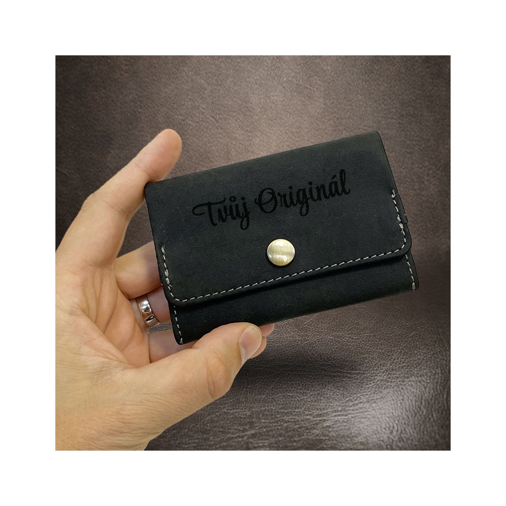 Mini retro černá kožená peněženka TILLBERG s tvým vlastním monogramem a textem + prémiové dárkové balení BE Original