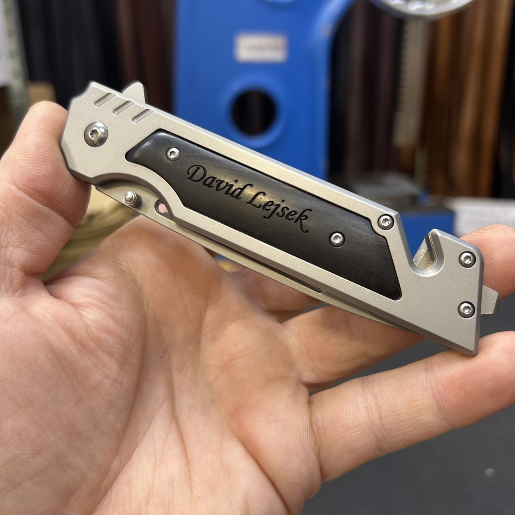 Stylový, odolný a maximálně praktický — tento moderní kovový skládací nůž je ideální volbou pro muže, kteří chtějí spojit minimalistický design, pevnou konstrukci a osobní dotek.