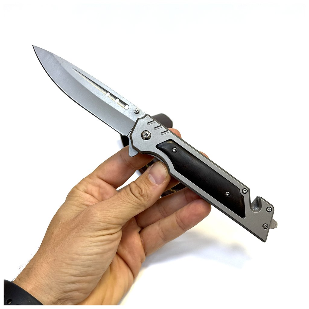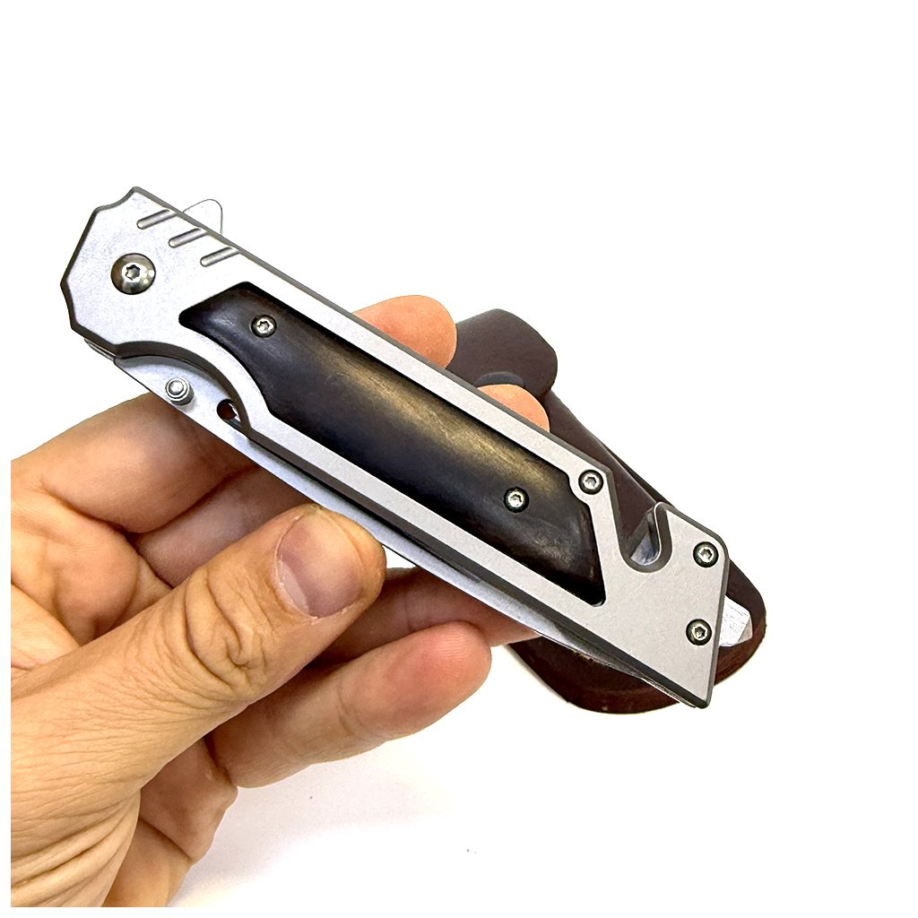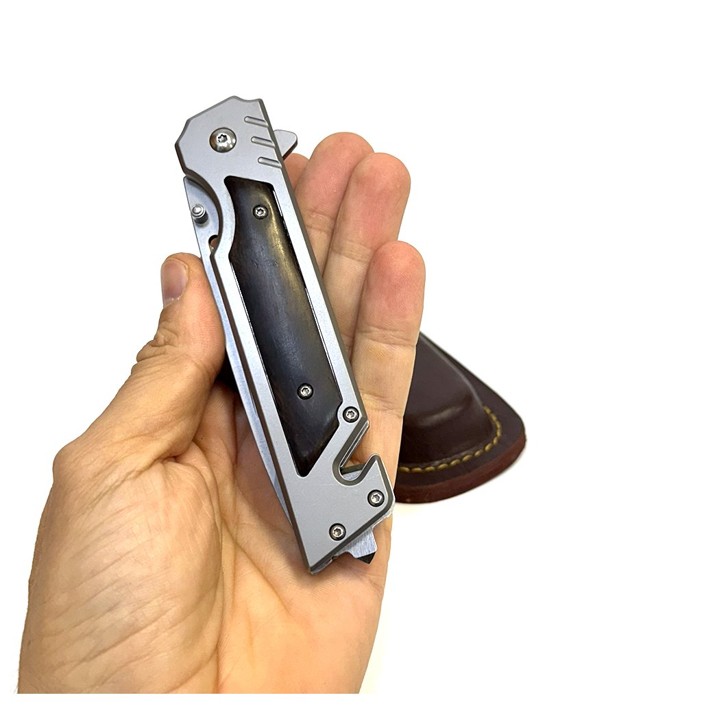 Moderní kovový vyklápěcí nůž s možností koženého pouzdra s vlastním textem + prémiové dárkové balení BE Original