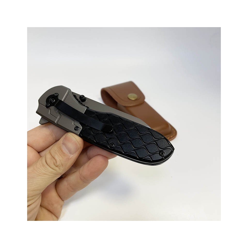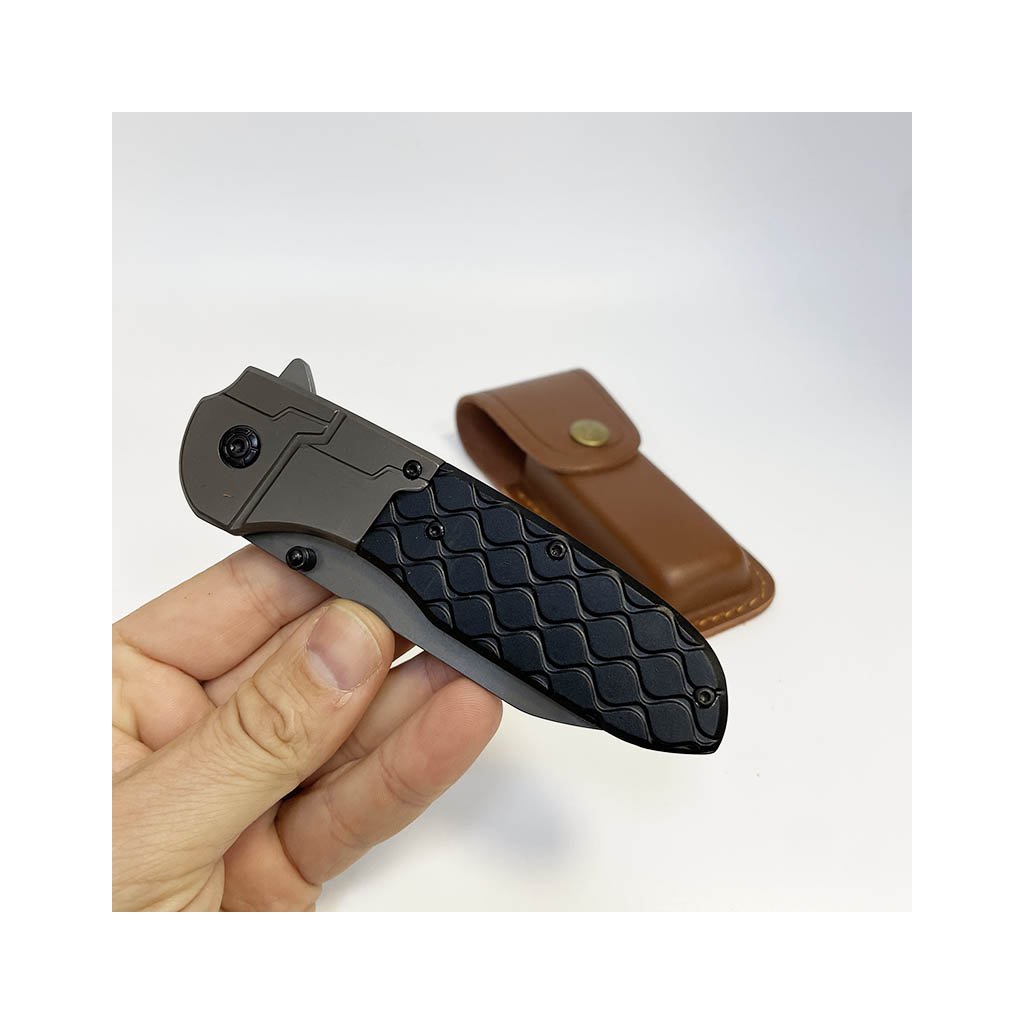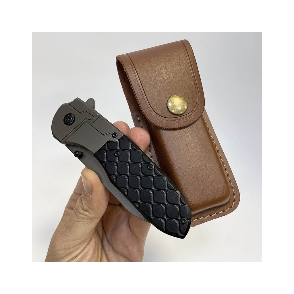 Moderní vyklápěcí nůž s čistým designem a koženým pouzdrem. Možnost gravírování vlastního textu či motivu přímo na pouzdro. Skvělý osobní dárek.
