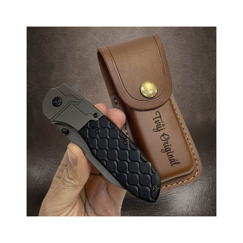 Moderní vyklápěcí nůž s možností koženého pouzdra s vlastním textem + prémiové dárkové balení BE Original