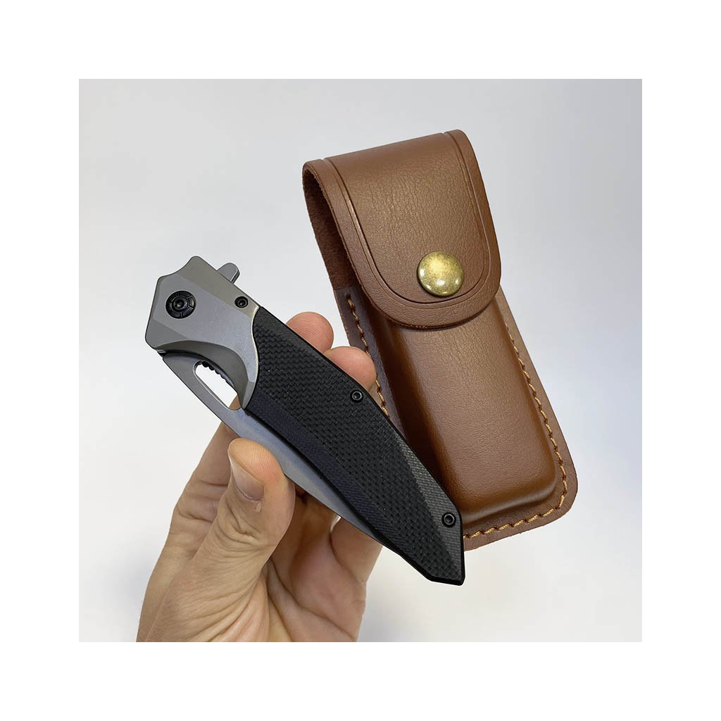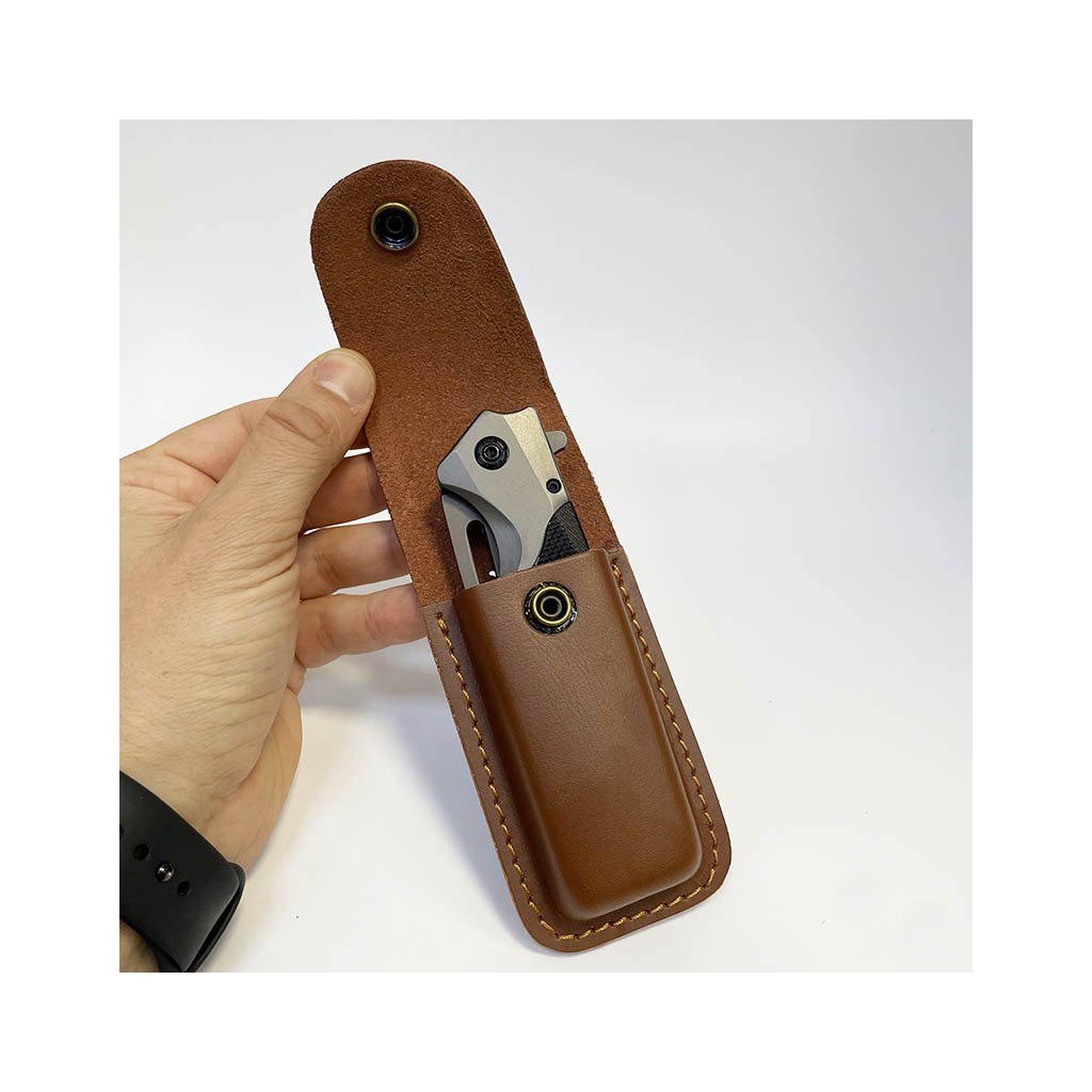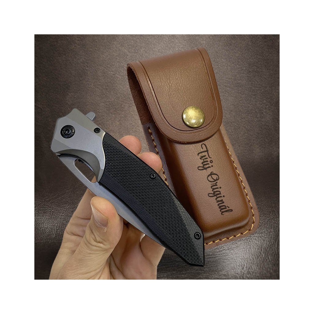 Moderní vyklápěcí nůž s čistým designem a koženým pouzdrem. Možnost gravírování vlastního textu či motivu přímo na pouzdro. Skvělý osobní dárek.