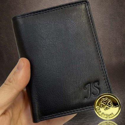 Luxusní pánská kožená peněženka z pravé hovězí kůže s RFID ochranou a možností ražby vlastního monogramu i vnitřní personalizace. Dodávána v dárkovém balení.