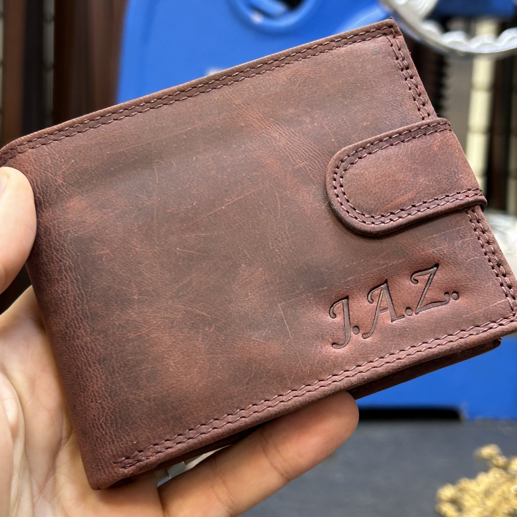 Stylová kožená peněženka na šířku se zapínáním – s vlastním monogramem