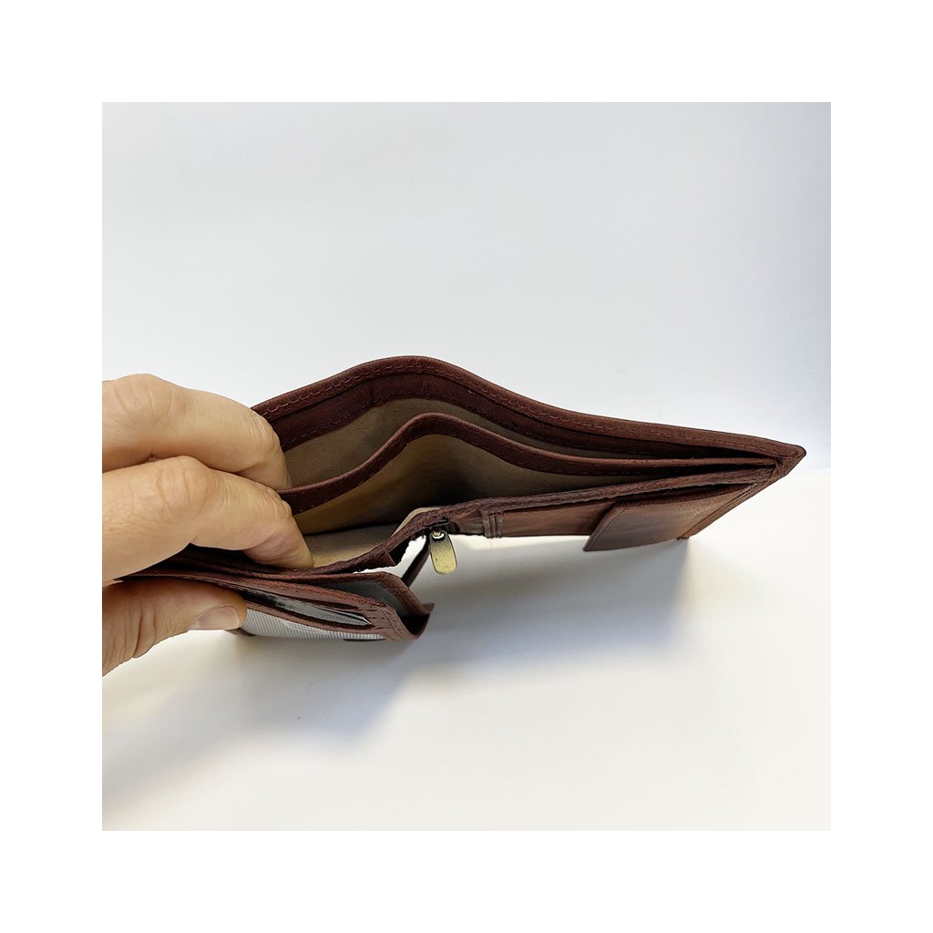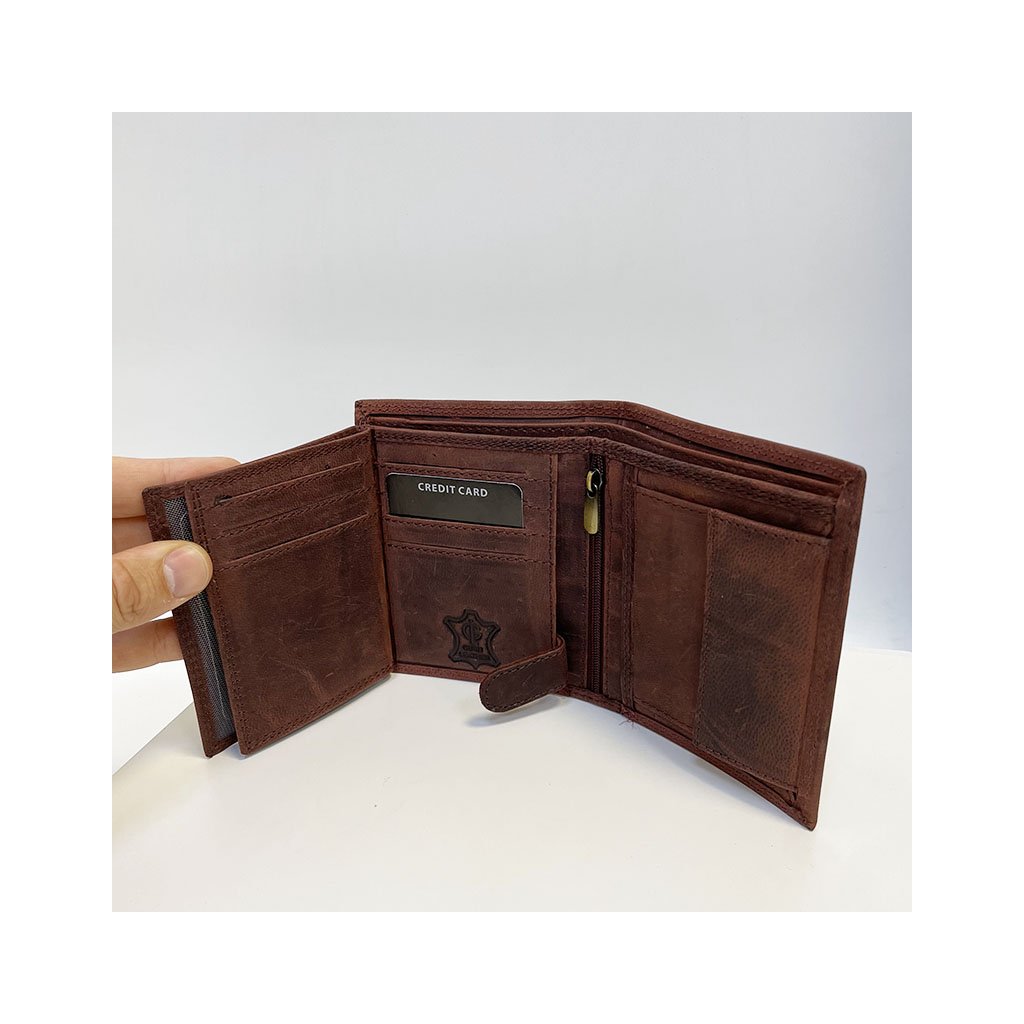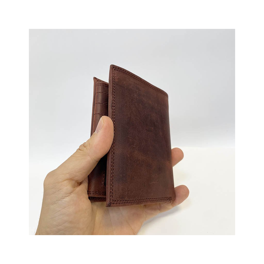 Tato elegantní pánská peněženka z pravé kůže v odstínu hluboké bordo barvy vás zaujme na první pohled. Je ručně šitá s maximálním důrazem na detail a pohodlně pojme vše, co potřebujete – bankovky, karty i mince. Díky kvalitnímu zpracování a poctivé kůži se stává nejen funkčním doplňkem, ale také stylovým prvkem každodenního života.