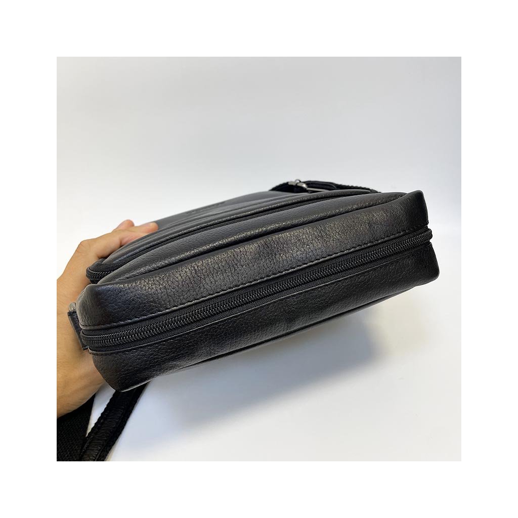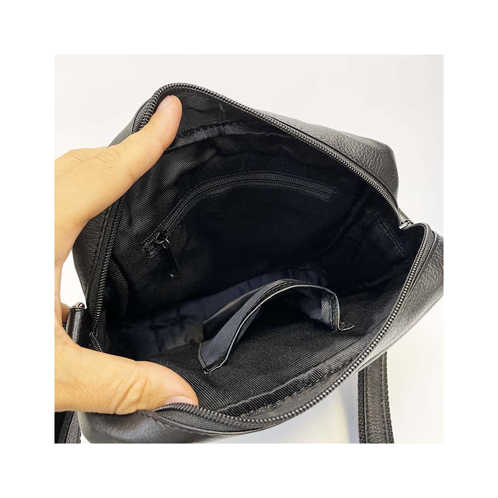 Crossbody kožená messenger taška je v příjemném strukturovaném černém odstínu. Přední kapsa na zip, Po otevření celé tašky na zip máte další kapsu a vnitřní klasické uspořádání, které lze celé zapnout na zip. Výhodou je i další kapsa na zadní straně.