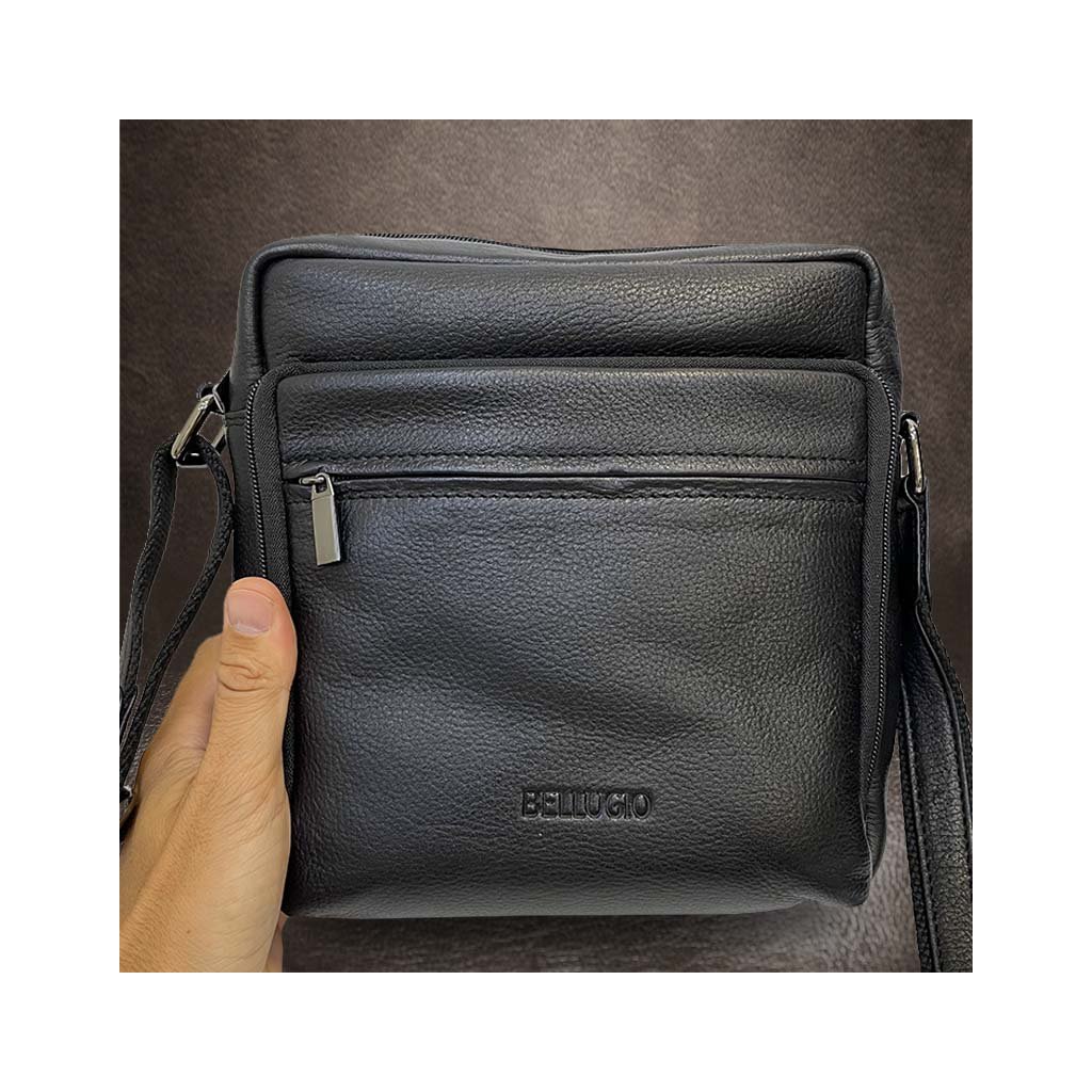 Pánská černá BELLUGIO Leather kožená crossbody messenger taška přes rameno | velikost L velká Bez personalizace - individuální přání řešíme po domluvě.