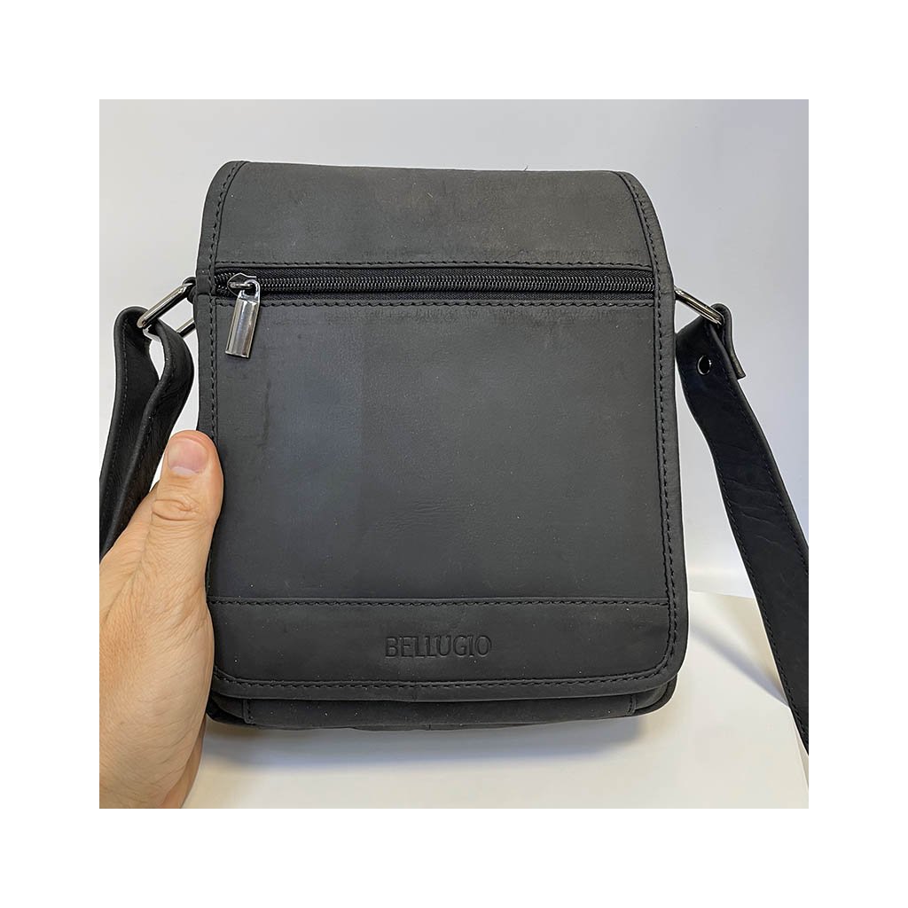 Pánská černá BELLUGIO Leather kožená crossbody messenger taška přes rameno | velikost M středně velká Bez personalizace - individuální přání řešíme po domluvě.