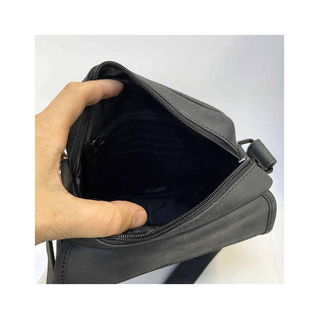 Crossbody kožená messenger taška je v klasickém černém odstínu. Přední kapsa na zip. Hlavní kapsa na zip, uvnitř pak další kapsa na zip. Celá taška je ideální velikosti, je vhodná na každodení nošení všeho nezbytného. Výhodou zadní kapsa na zip. Součástí nastavitelný kožený popruh.