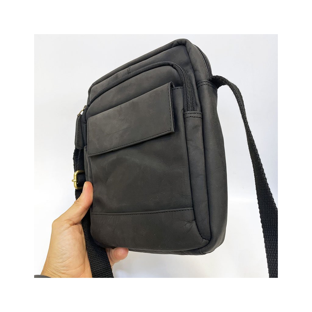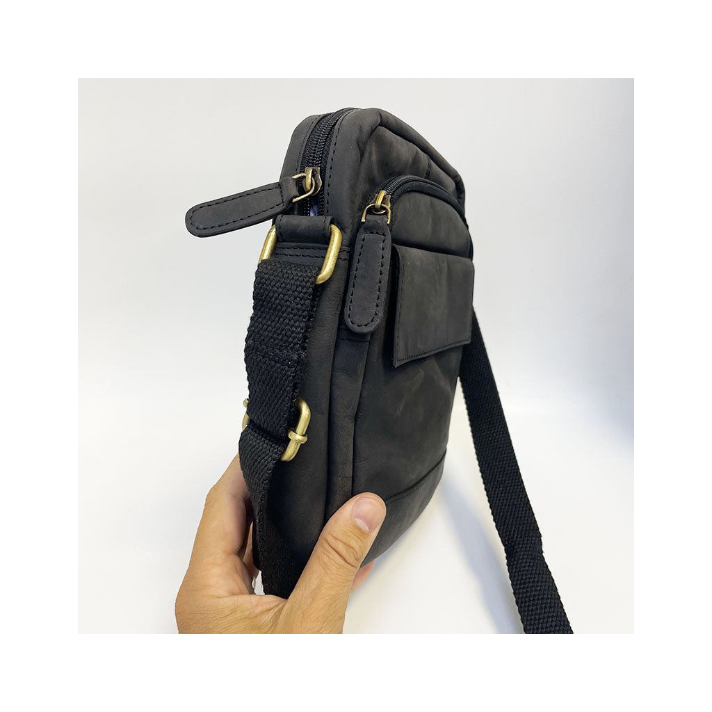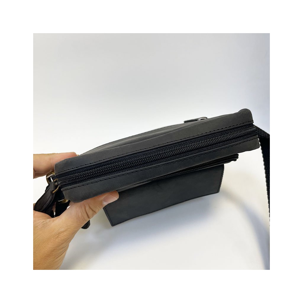 Crossbody kožená messenger taška je v klasickém černém odstínu v broušené úpravě. Působí tak velmi výjimečně, až antracitově. Přední kapsa na zip a kapsa na magnet. Hlavní kapsa na zip, uvnitř pak další kapsa na zip. Celá taška je středně velké velikosti, je vhodná na každodení nošení všeho nezbytného. Výhodou zadní kapsa na zip. Součástí nastavitelný popruh.