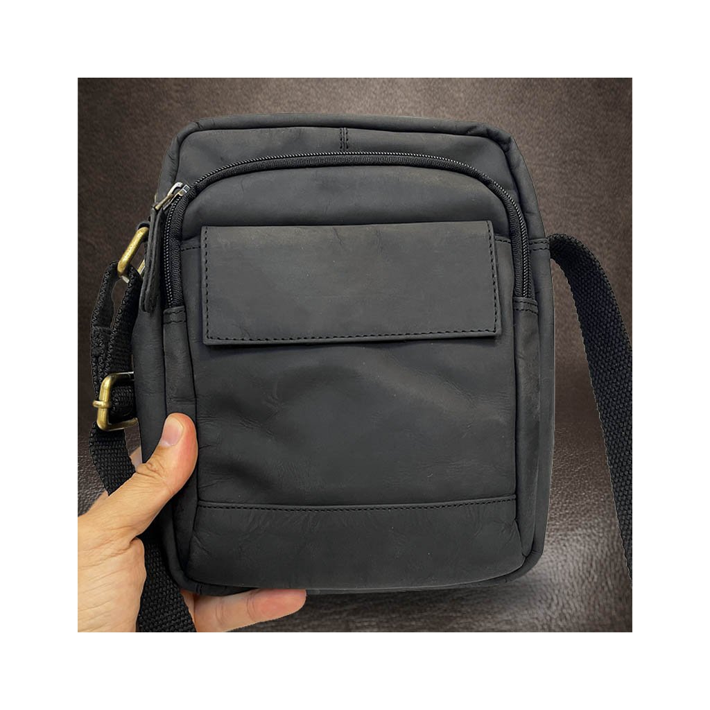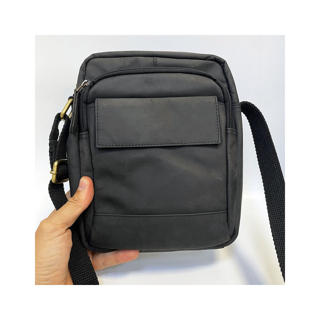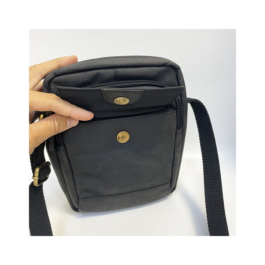 Crossbody kožená messenger taška je v klasickém černém odstínu v broušené úpravě. Působí tak velmi výjimečně, až antracitově. Přední kapsa na zip a kapsa na magnet. Hlavní kapsa na zip, uvnitř pak další kapsa na zip. Celá taška je středně velké velikosti, je vhodná na každodení nošení všeho nezbytného. Výhodou zadní kapsa na zip. Součástí nastavitelný popruh.