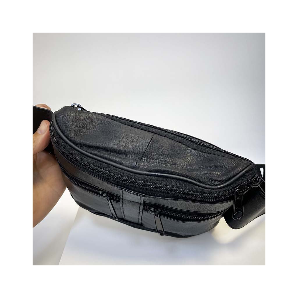 Jednoduchá moderní kožená ledvinka se spoustou kapes na zip. Klasický nastavitelný textilní pásek s plastovou sponou. Velmi vhodné např. na dovolené,