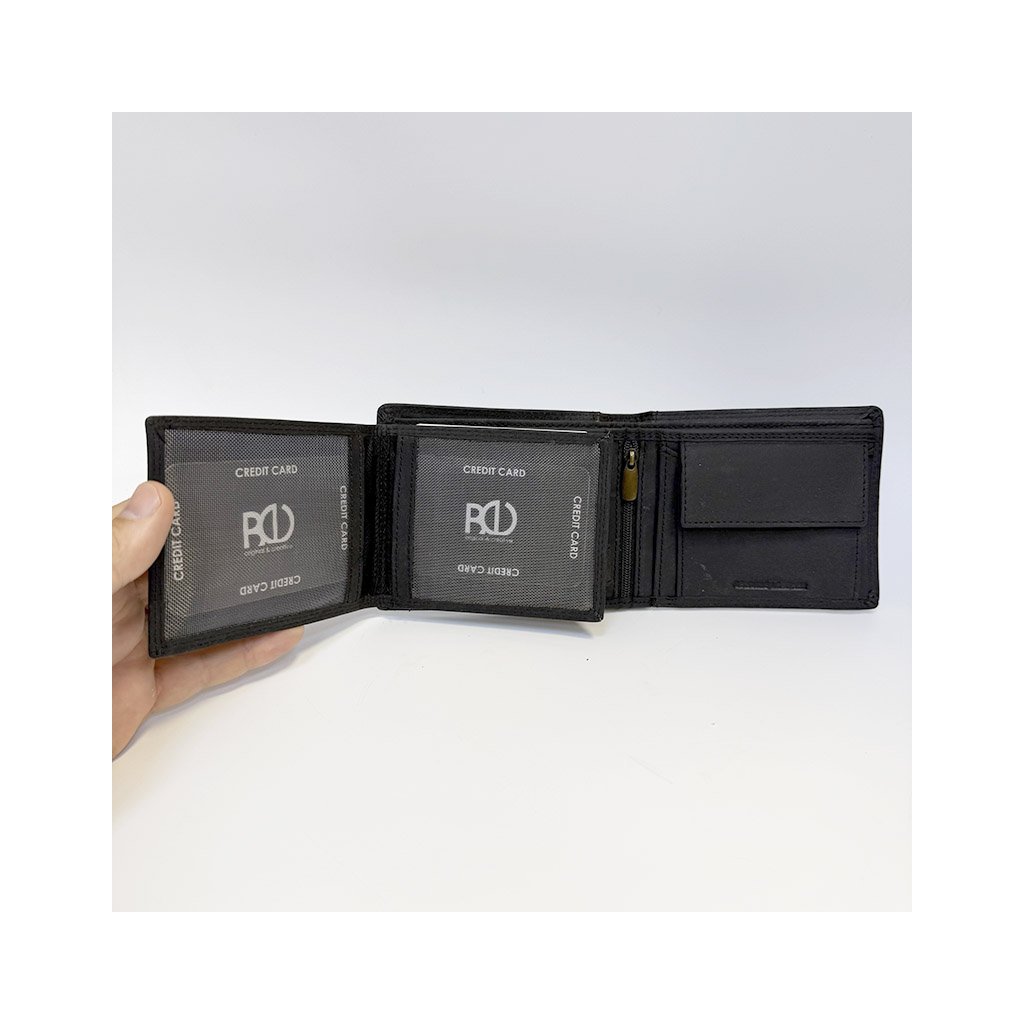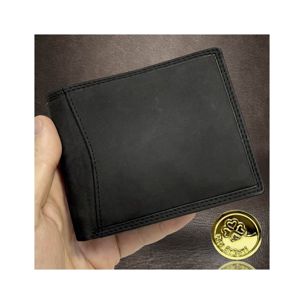 Pánská černá kožená peněženka GURU Leather s monogramem (ražba) + Akce - zlatá mince Pro štěstí ZDARMA