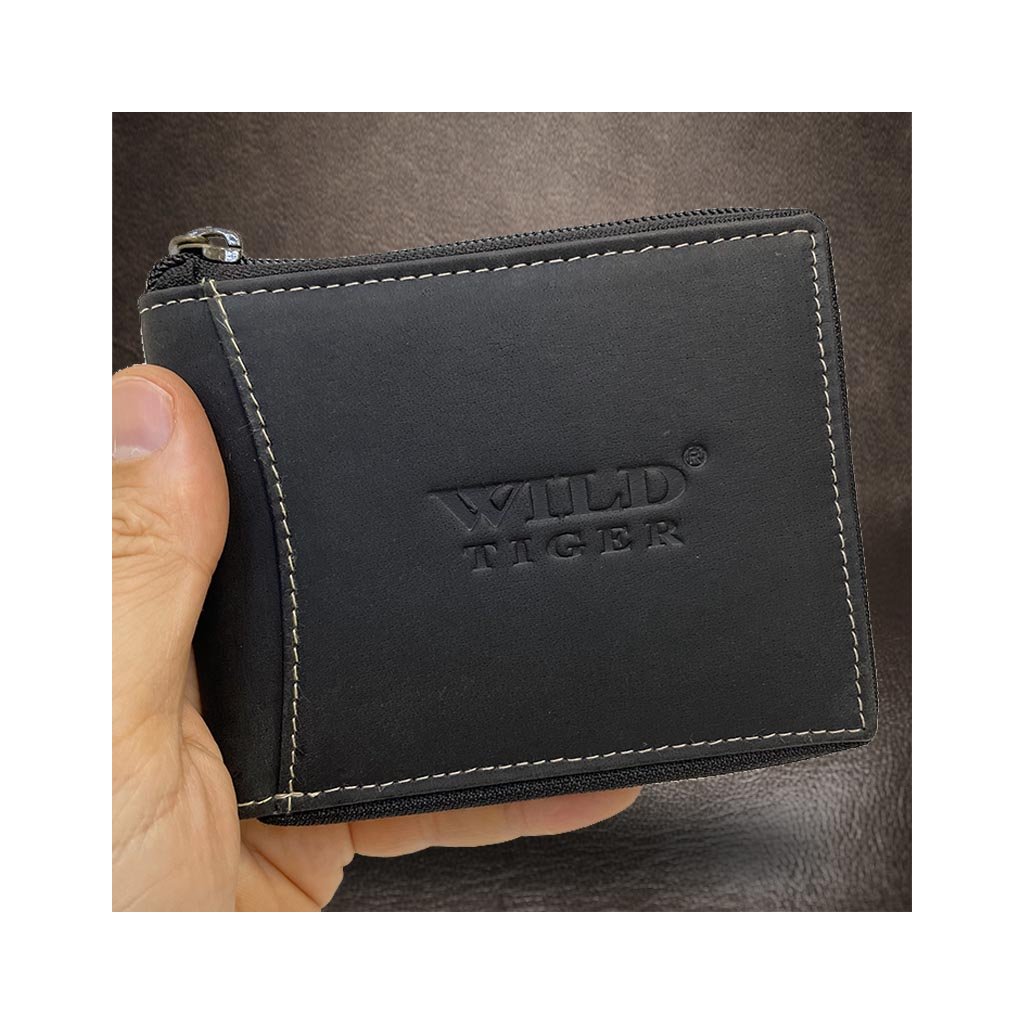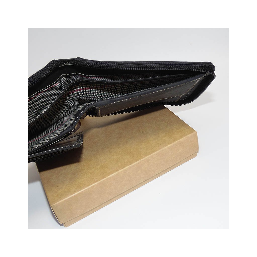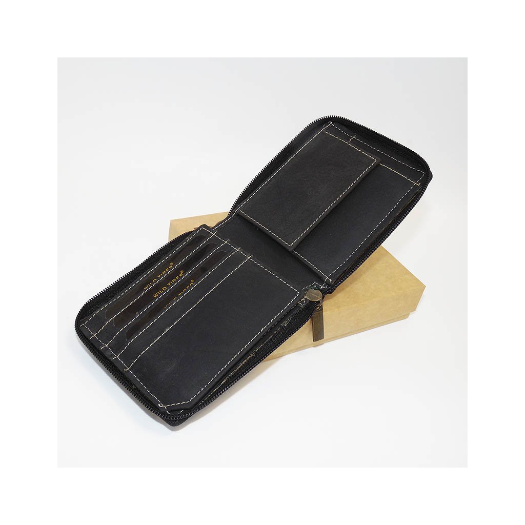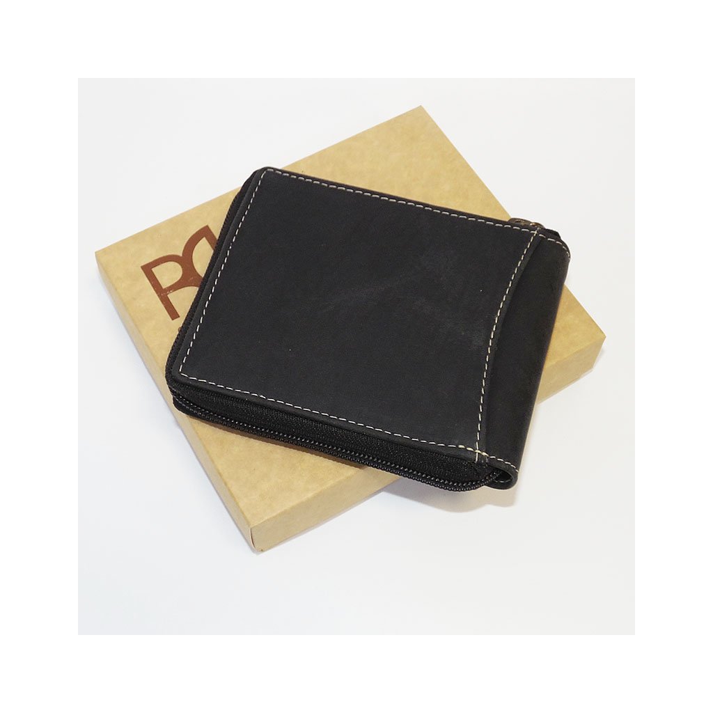 Pánská černá kožená peněženka Leon ZIPPER z broušené kůže s monogramem, textem nebo fotkou