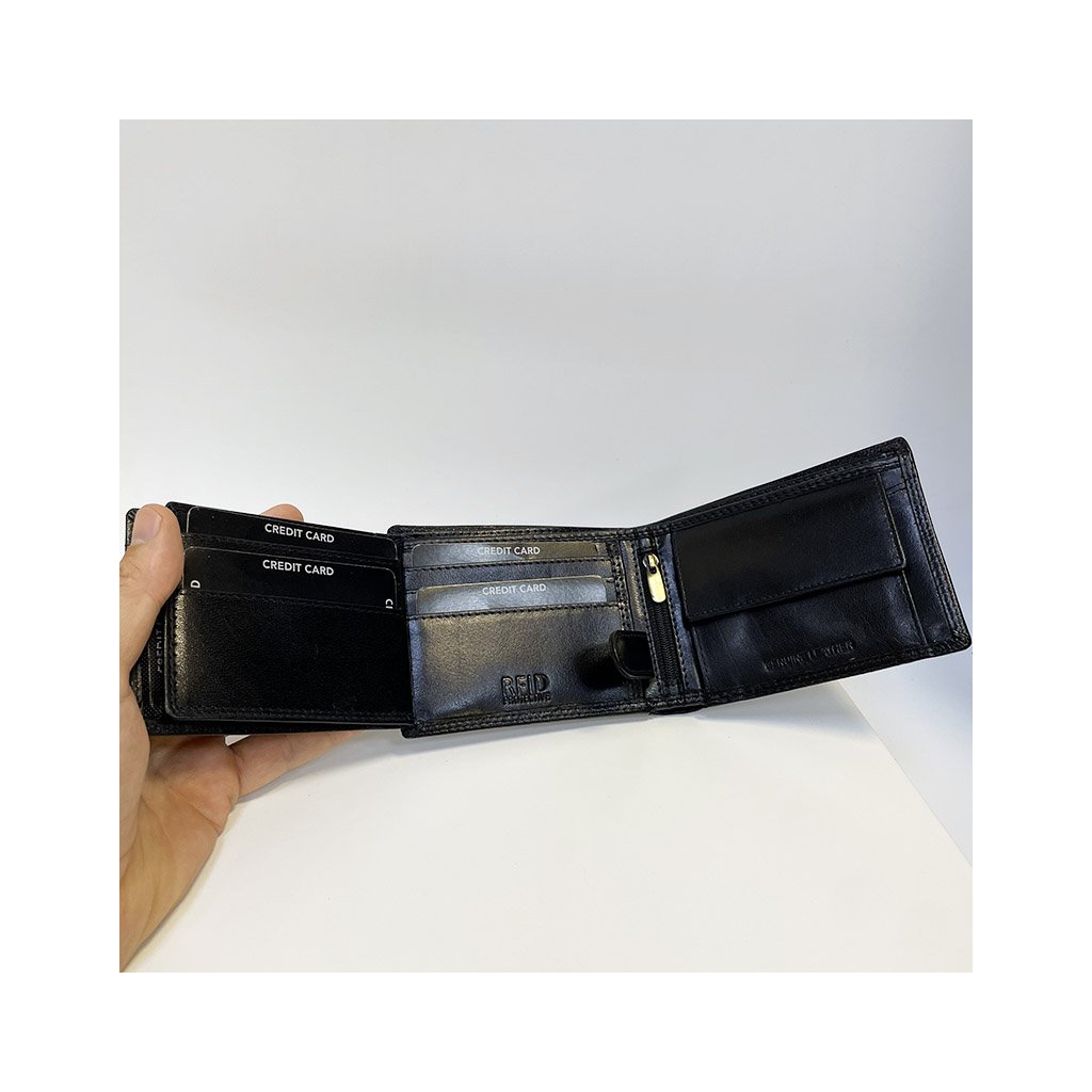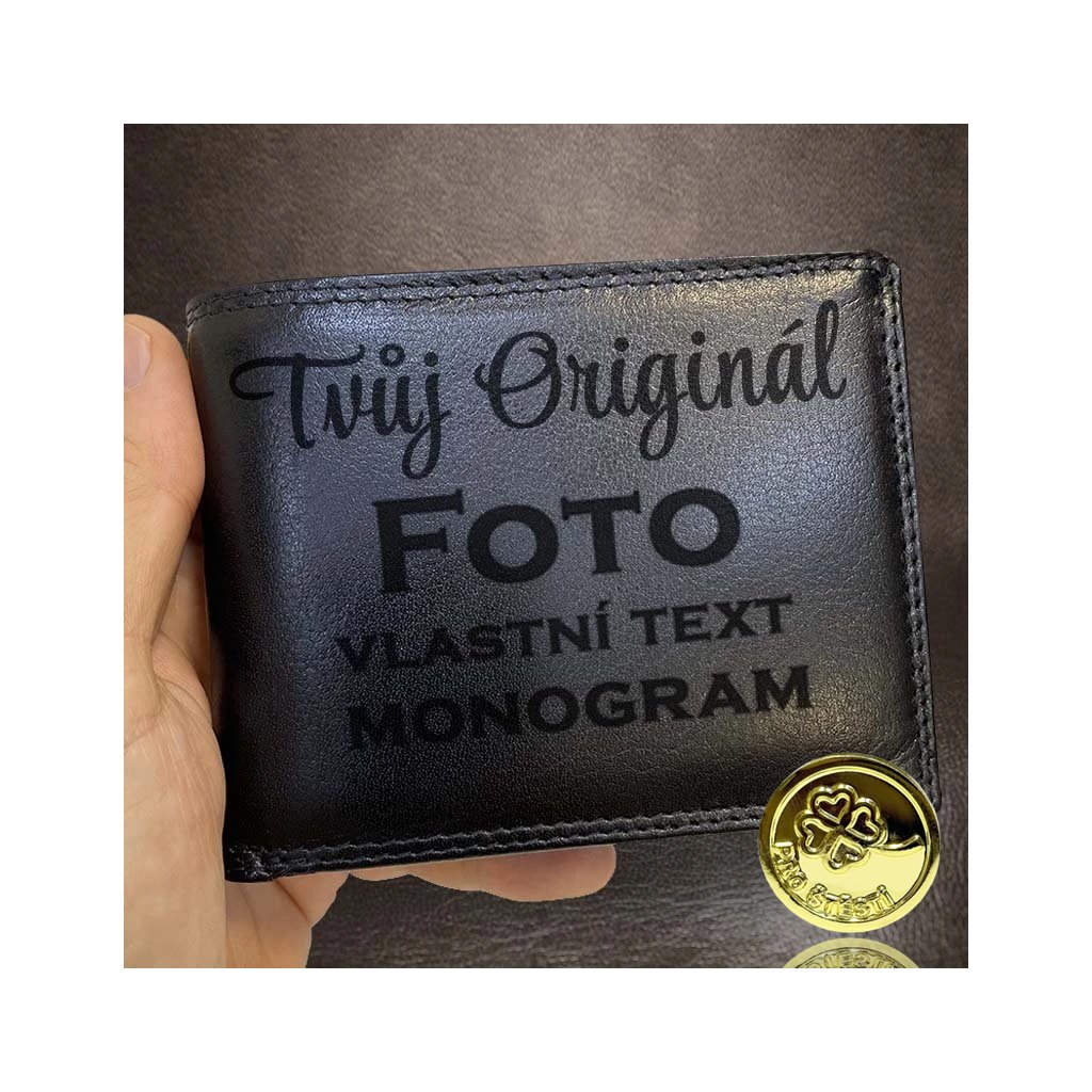 Pánská černá kožená peněženka ROYAL Leather RFID s vlastním monogramem, textem nebo fotkou + Akce - zlatá mince Pro štěstí ZDARMA