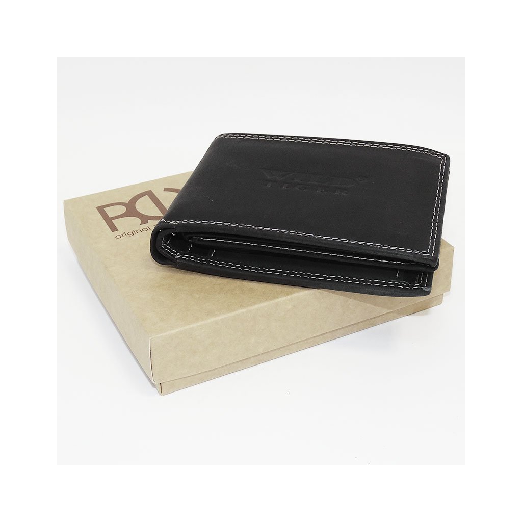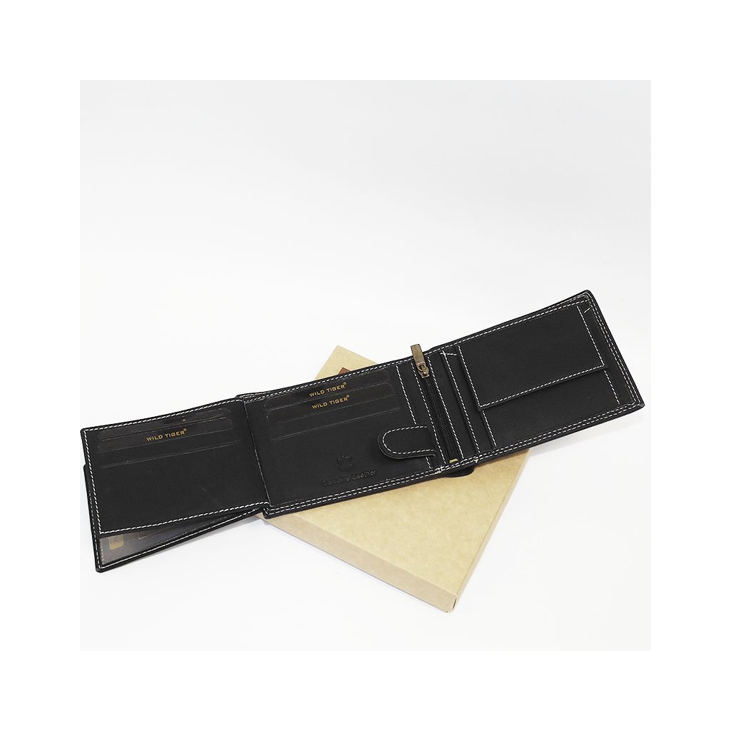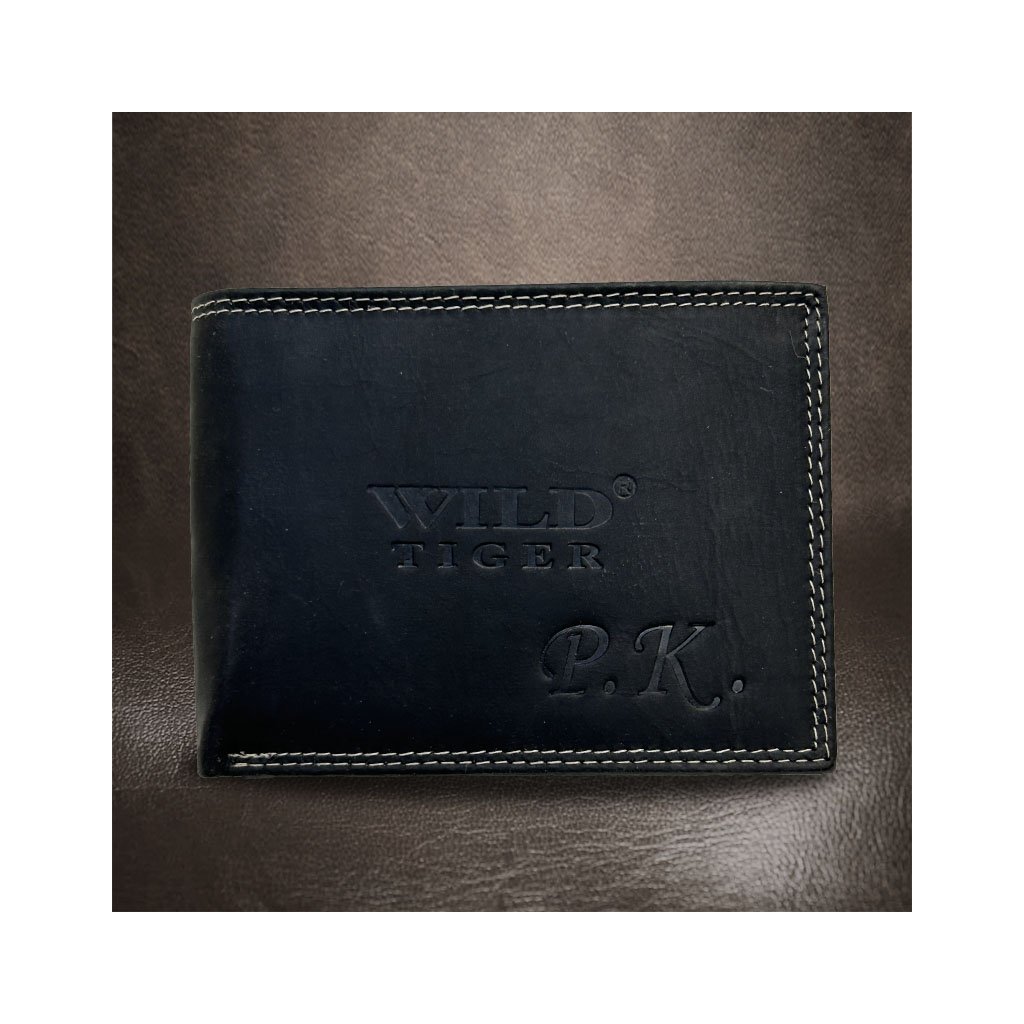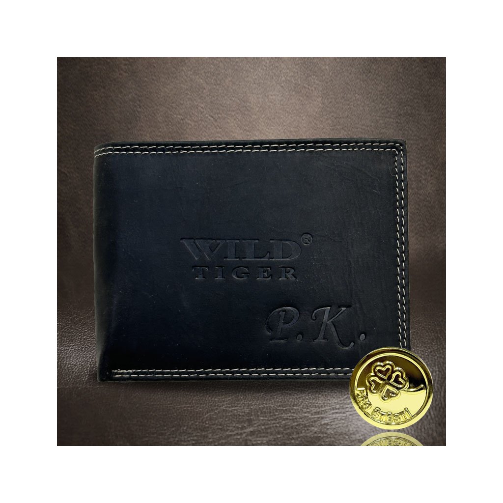 Pánská černá kožená peněženka Tiger Leather s monogramem (ražba) + Akce - zlatá mince Pro štěstí ZDARMA