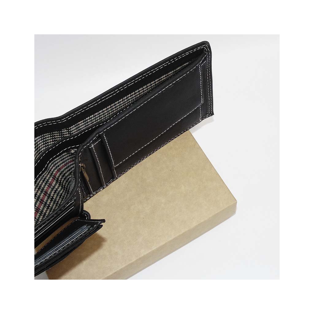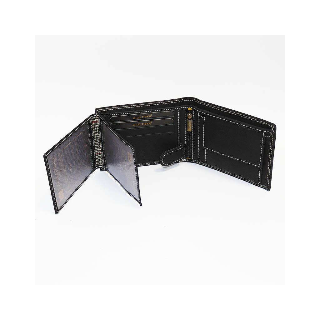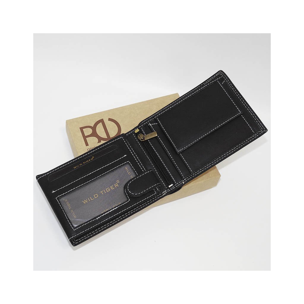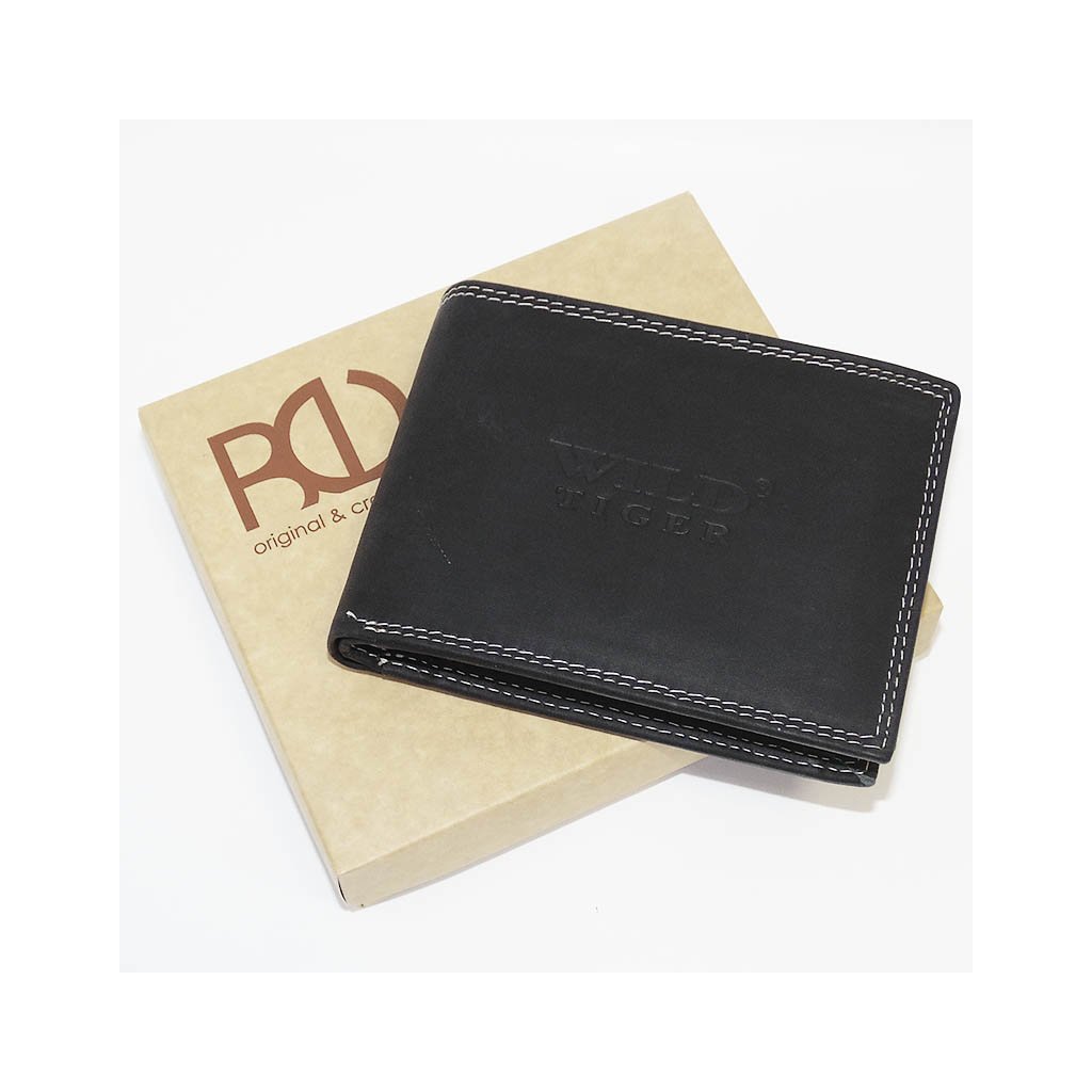 Pánská černá kožená peněženka Tiger Leather s monogramem (ražba) + Akce - zlatá mince Pro štěstí ZDARMA