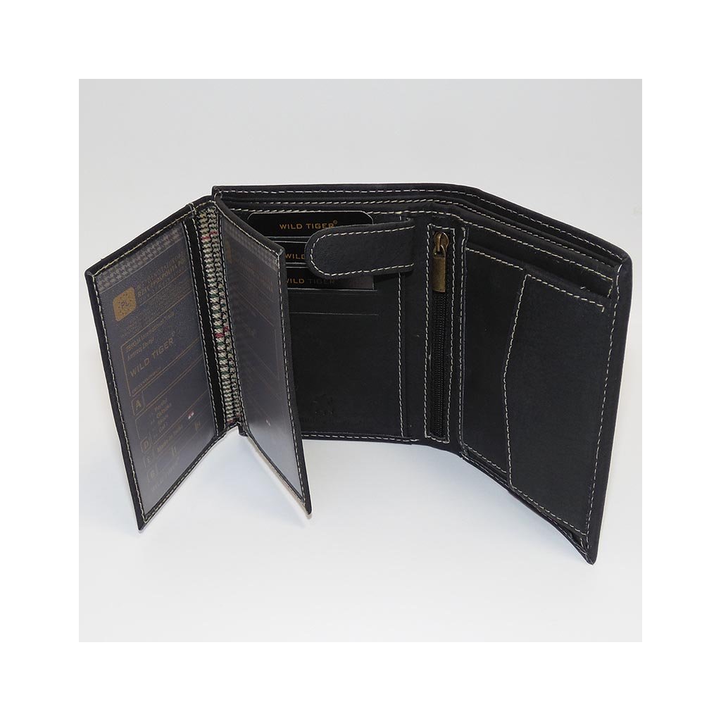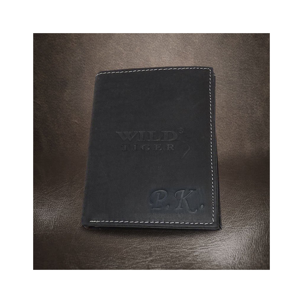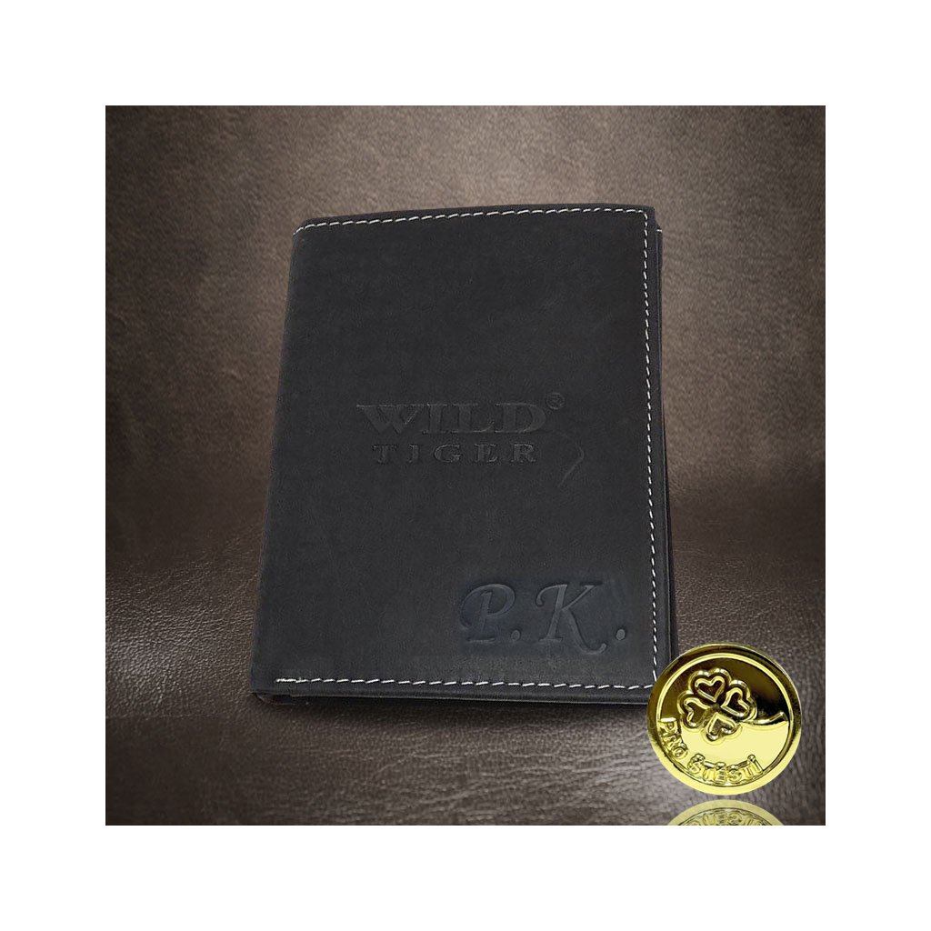 Pánská černá kožená peněženka Tiger Leather s monogramem (ražba) + Akce - zlatá mince Pro štěstí ZDARMA