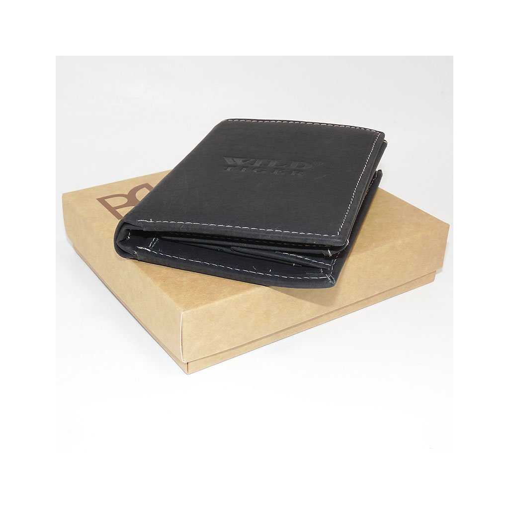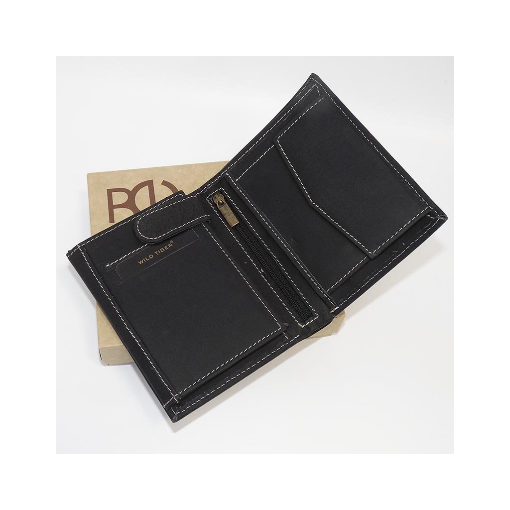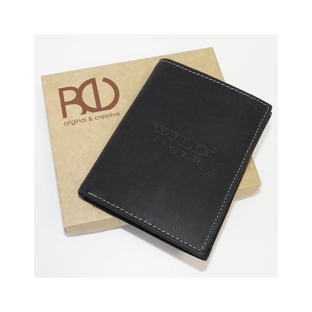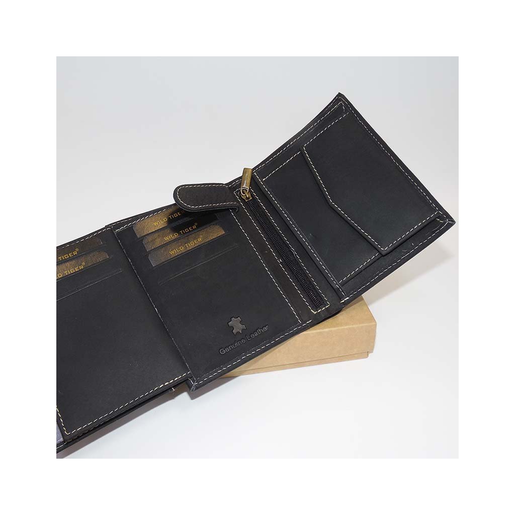 Pánská černá kožená peněženka Tiger Leather s monogramem (ražba) + Akce - zlatá mince Pro štěstí ZDARMA