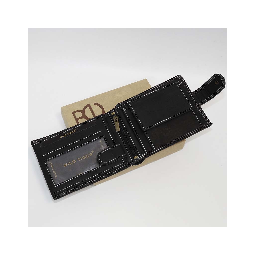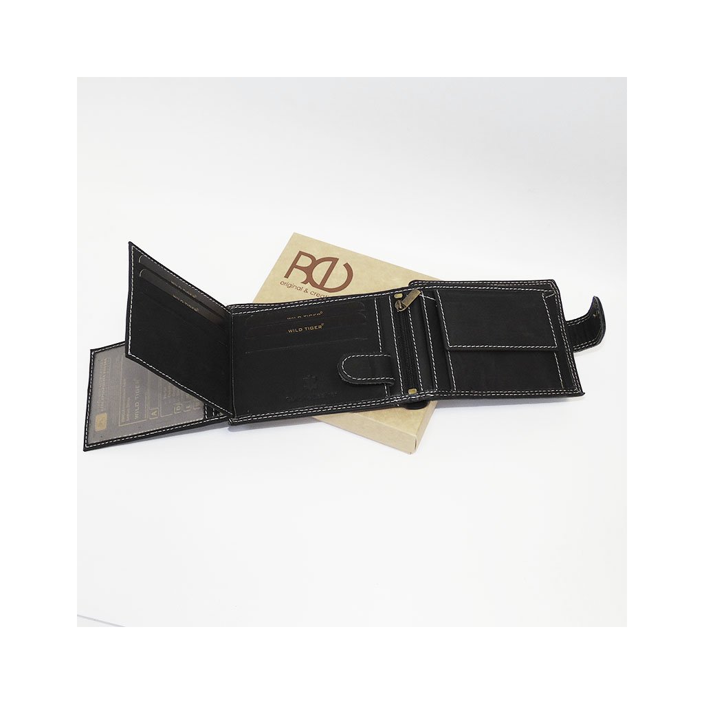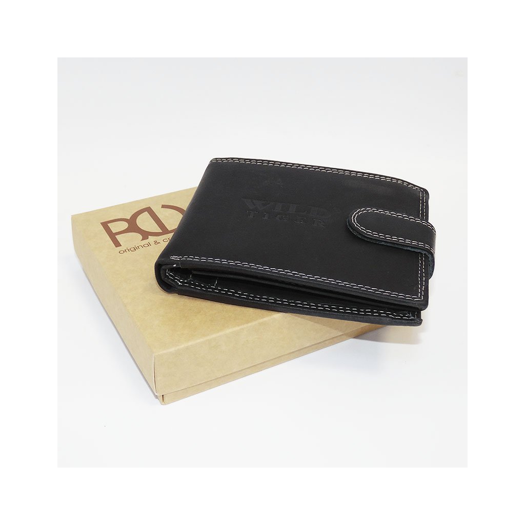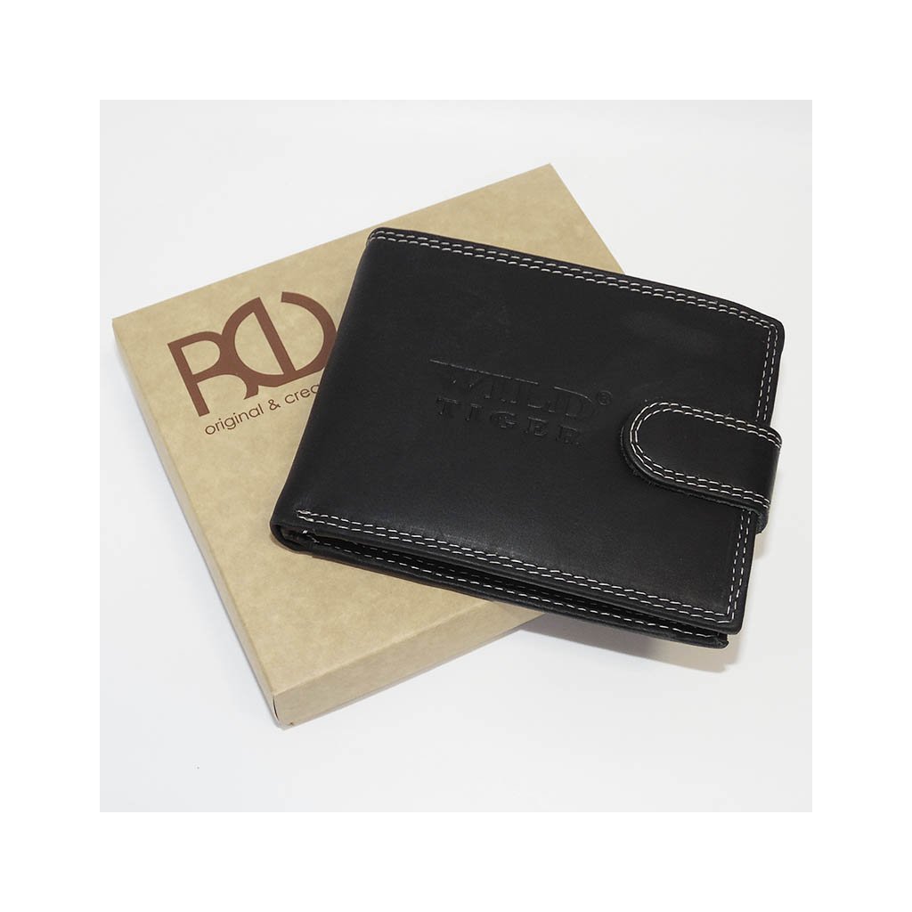 Pánská černá kožená peněženka Tiger Leather s monogramem (ražba) + Akce - zlatá mince Pro štěstí ZDARMA