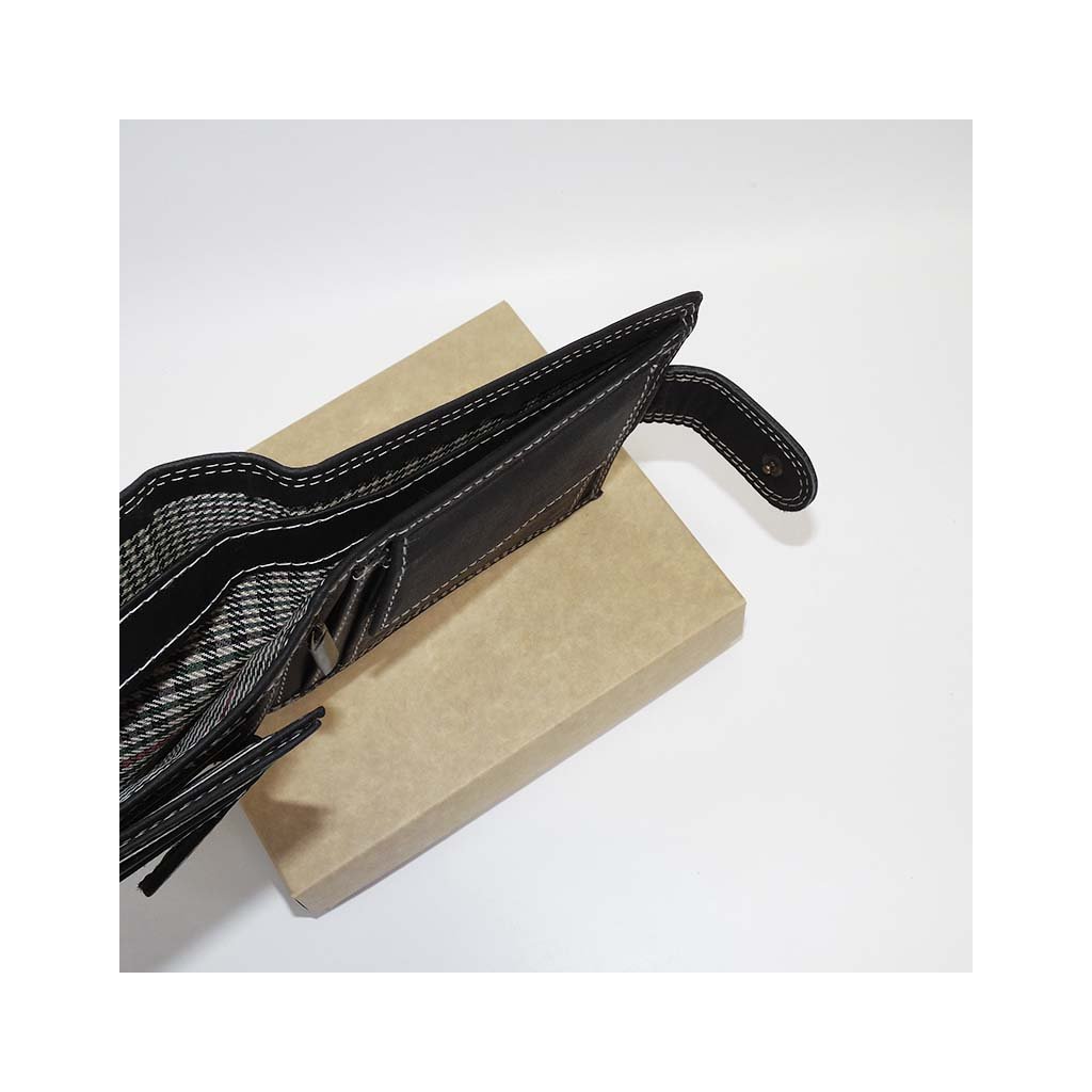 Luxusní černá kožená peněženka ROYAL LEATHER na šířku se zapínáním. Ražba monogramu na přání, možnost věnování uvnitř. Pravá kůže, ruční šití, elegantní dárkové balení.