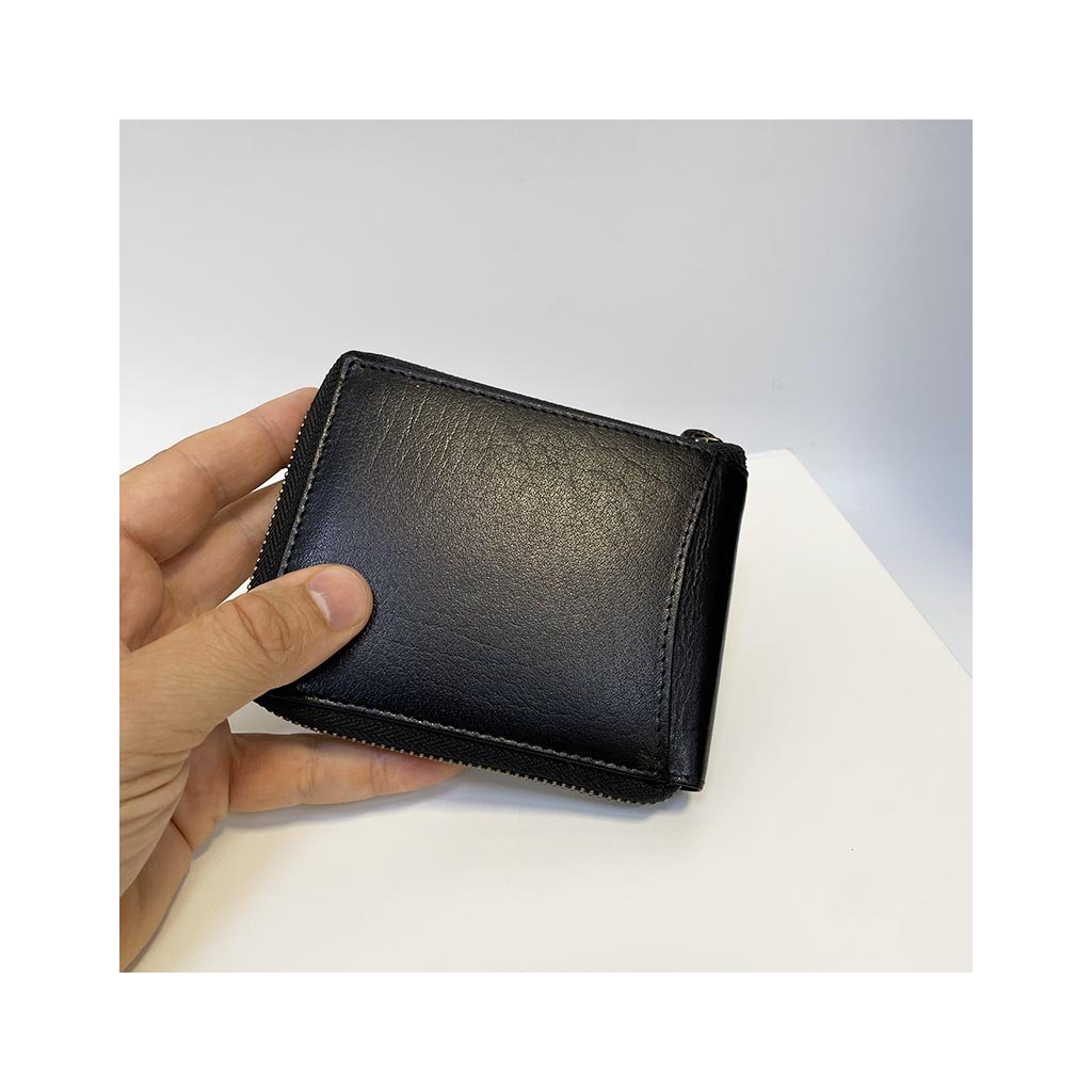 Pánská černá kožená peněženka ZIPPER ROYAL Leather s monogramem (ražba) + Akce - zlatá mince Pro štěstí ZDARMA