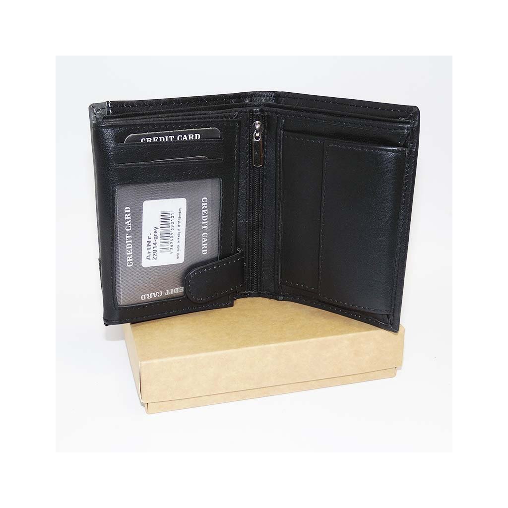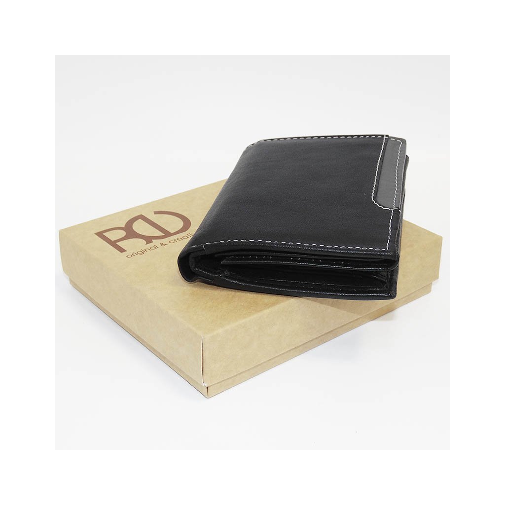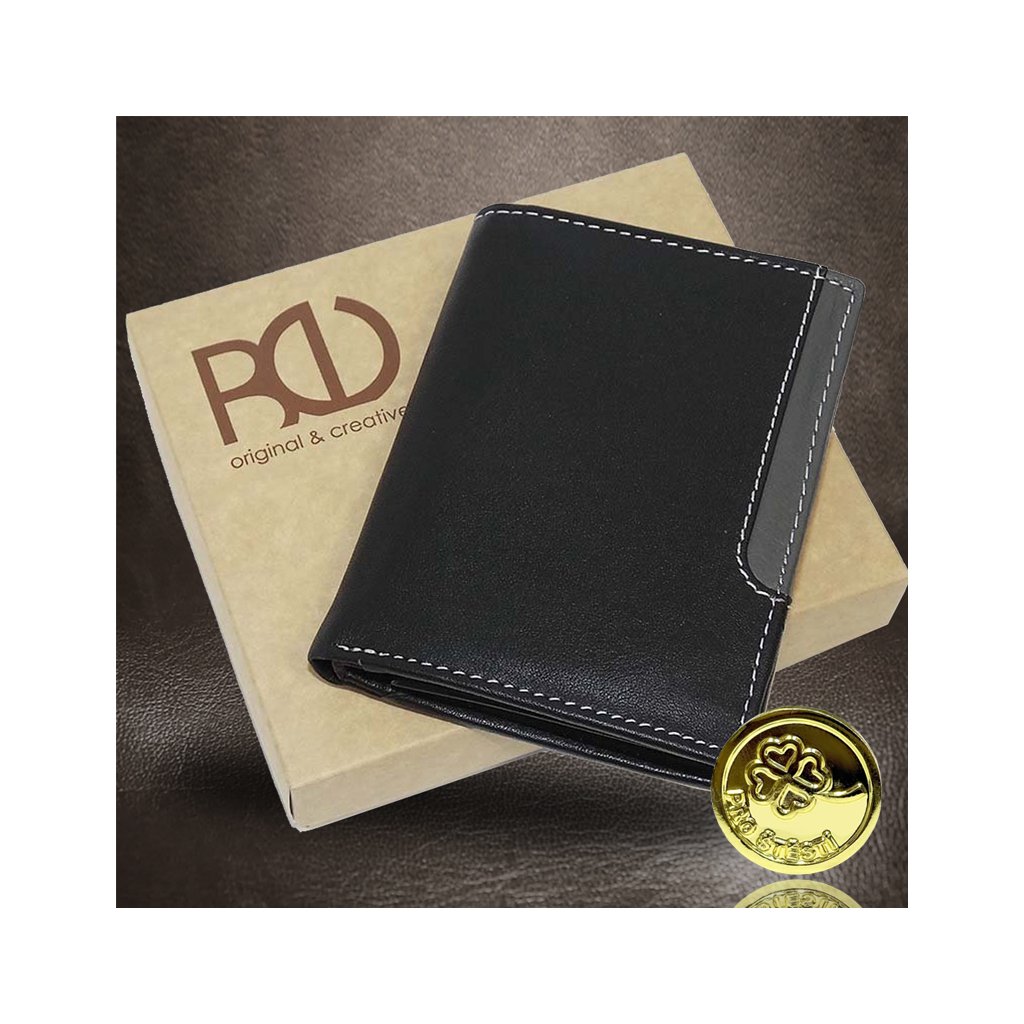 Pánská černá/šedá kožená peněženka BULL Leather s monogramem (ražba) + Akce - zlatá mince Pro štěstí ZDARMA
