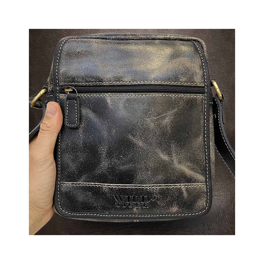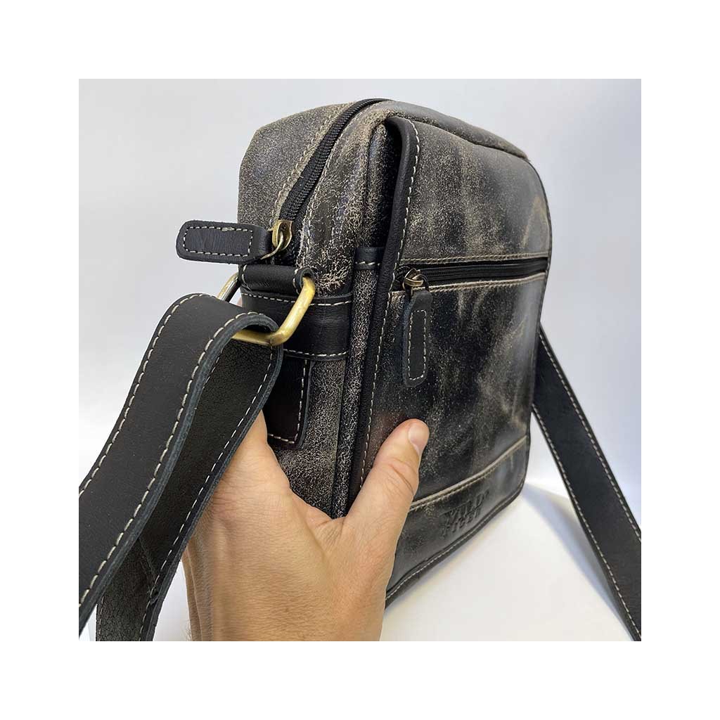 Pánská černá WILD Leather kožená crossbody messenger taška přes rameno | velikost L velká Bez personalizace - individuální přání řešíme po domluvě.