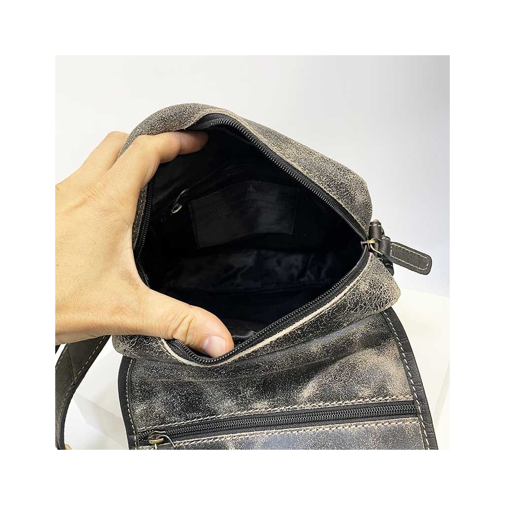 Crossbody kožená messenger taška je v příjemném broušeném černém odstínu. Přední kapsa na zip, Po otevření celé tašky na zip máte další kapsu a vnitřní klasické uspořádání, které lze celé zapnout na zip. Výhodou je i další kapsa na zip na zadní straně.